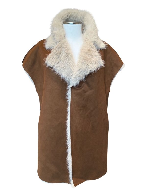 Αμάνικη οικολογική γούνα Jilet καφέ-μπεζ