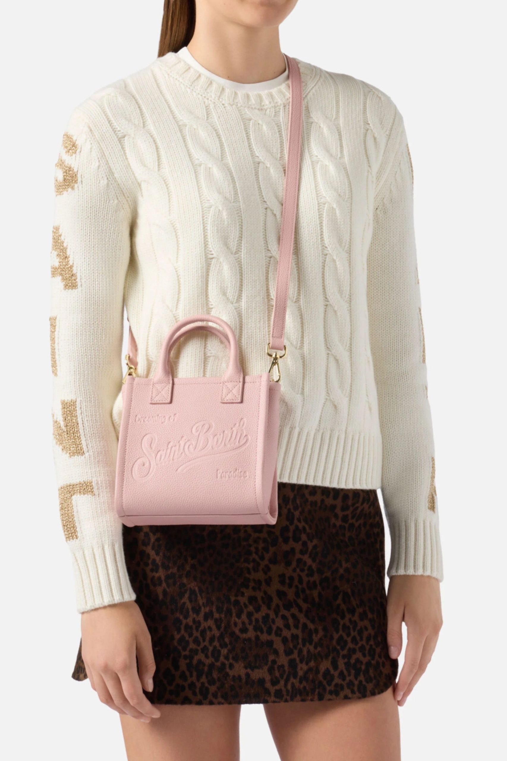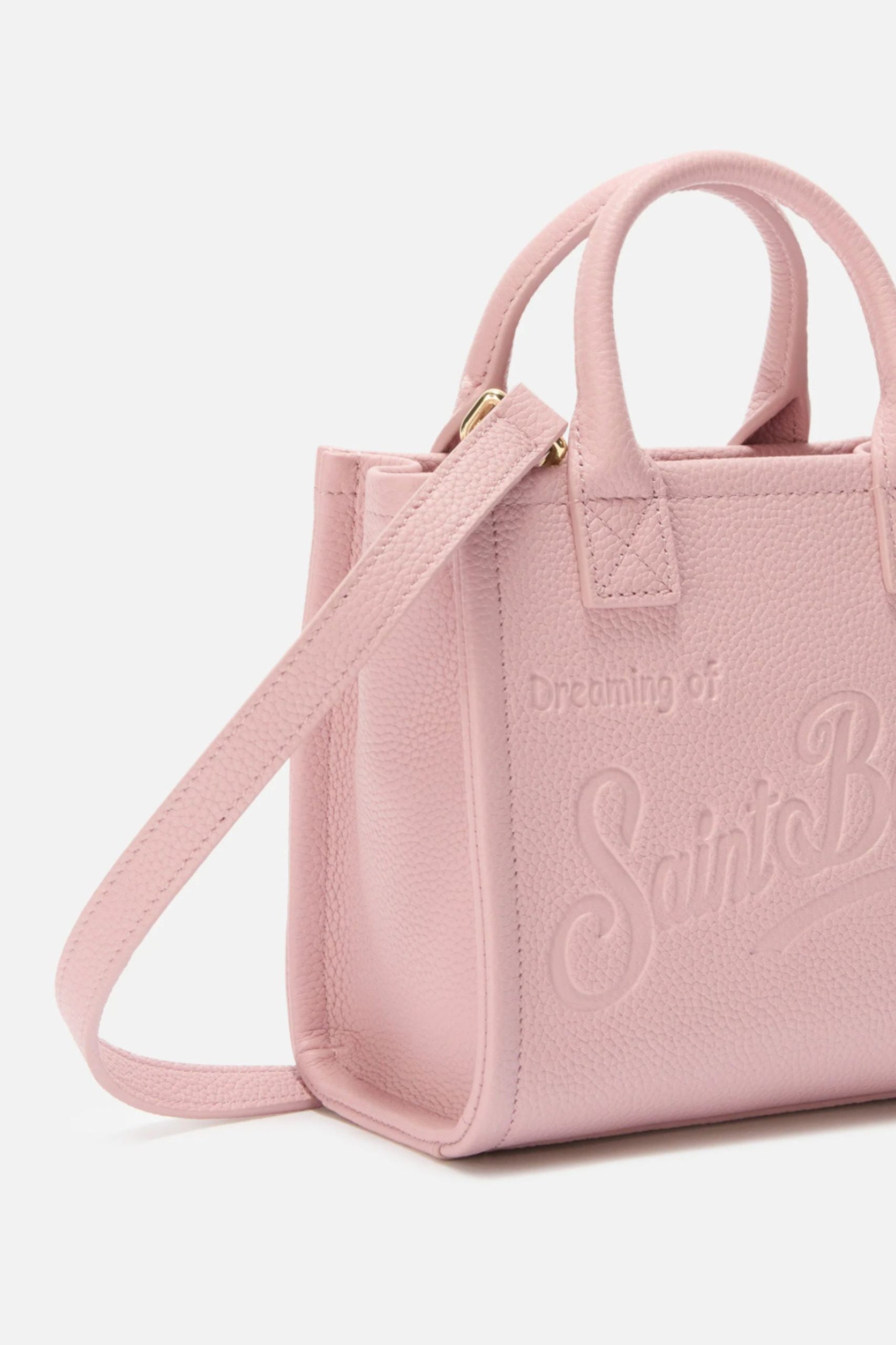 Τσάντα ώμου μίνι σε ροζ σφυρήλατο δέρμα