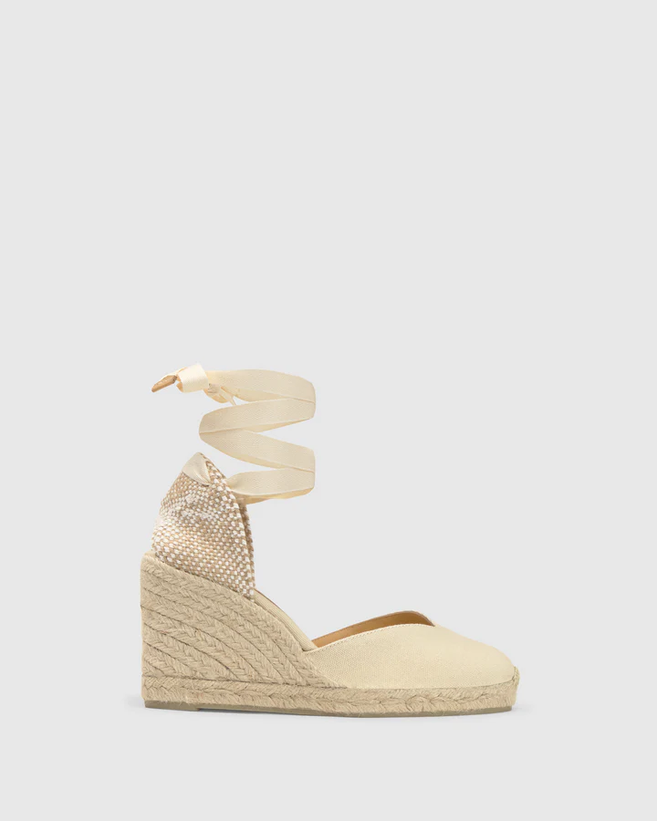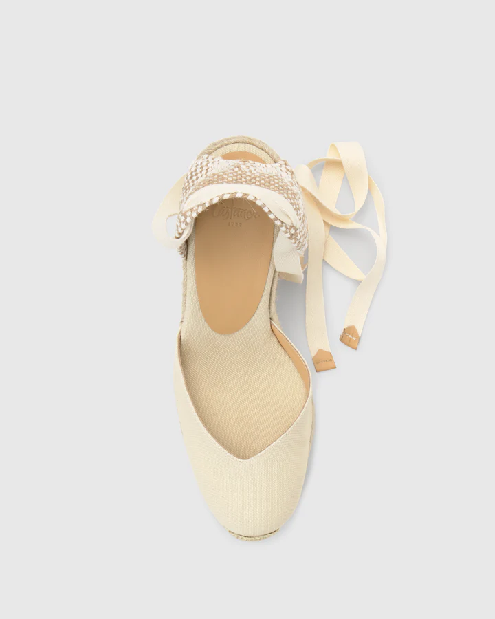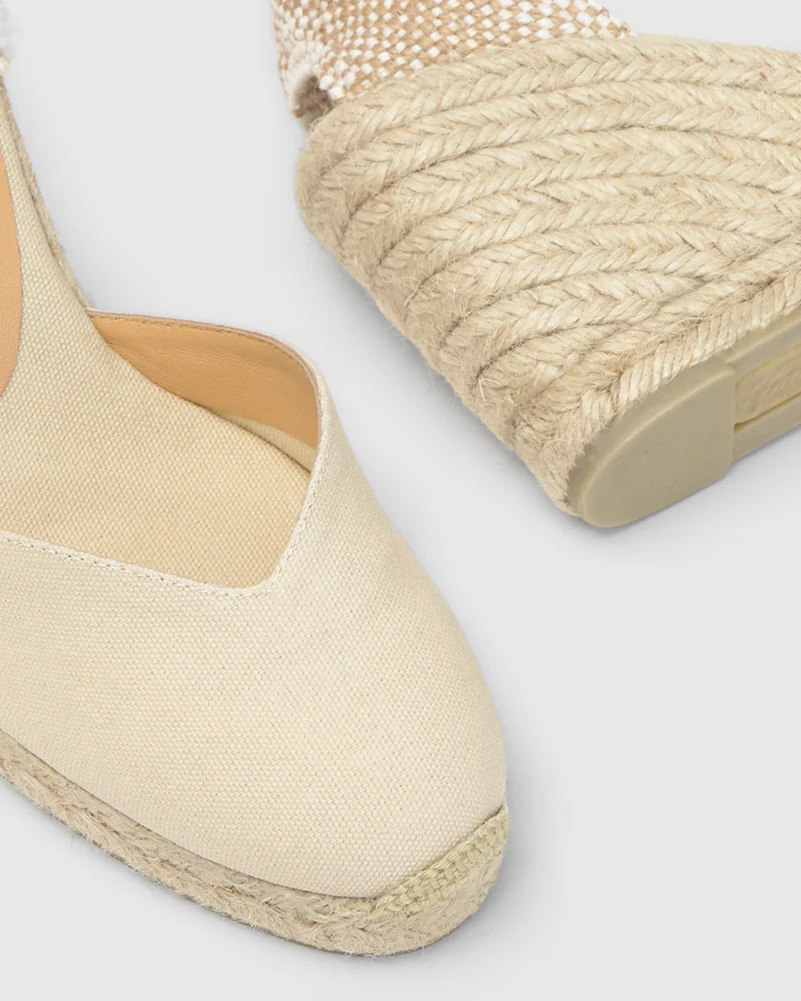 Εμβληματικές εσπαντρίγιες Chiara από οργανικό βαμβάκι, δέσιμο με κορδόνια και μαλακή σόλα 9 εκατοστών.