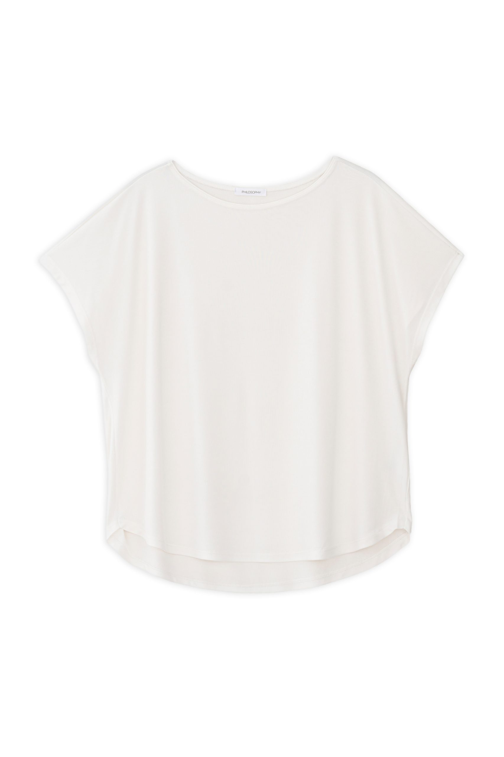 Κοντομάνικη μπλούζα ριπ με στρογγυλή λαιμόκοψη και ασύμμετρο μήκος.