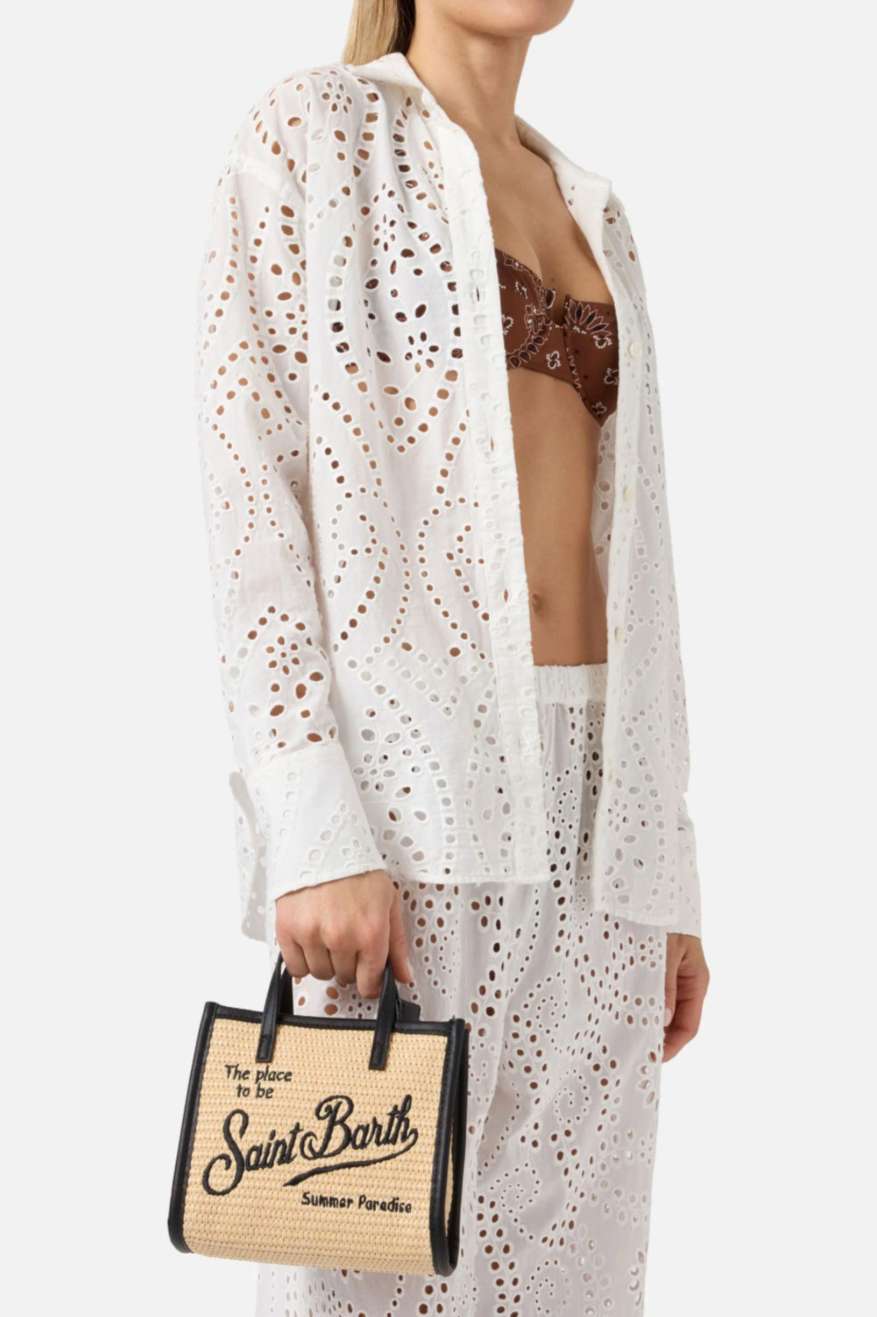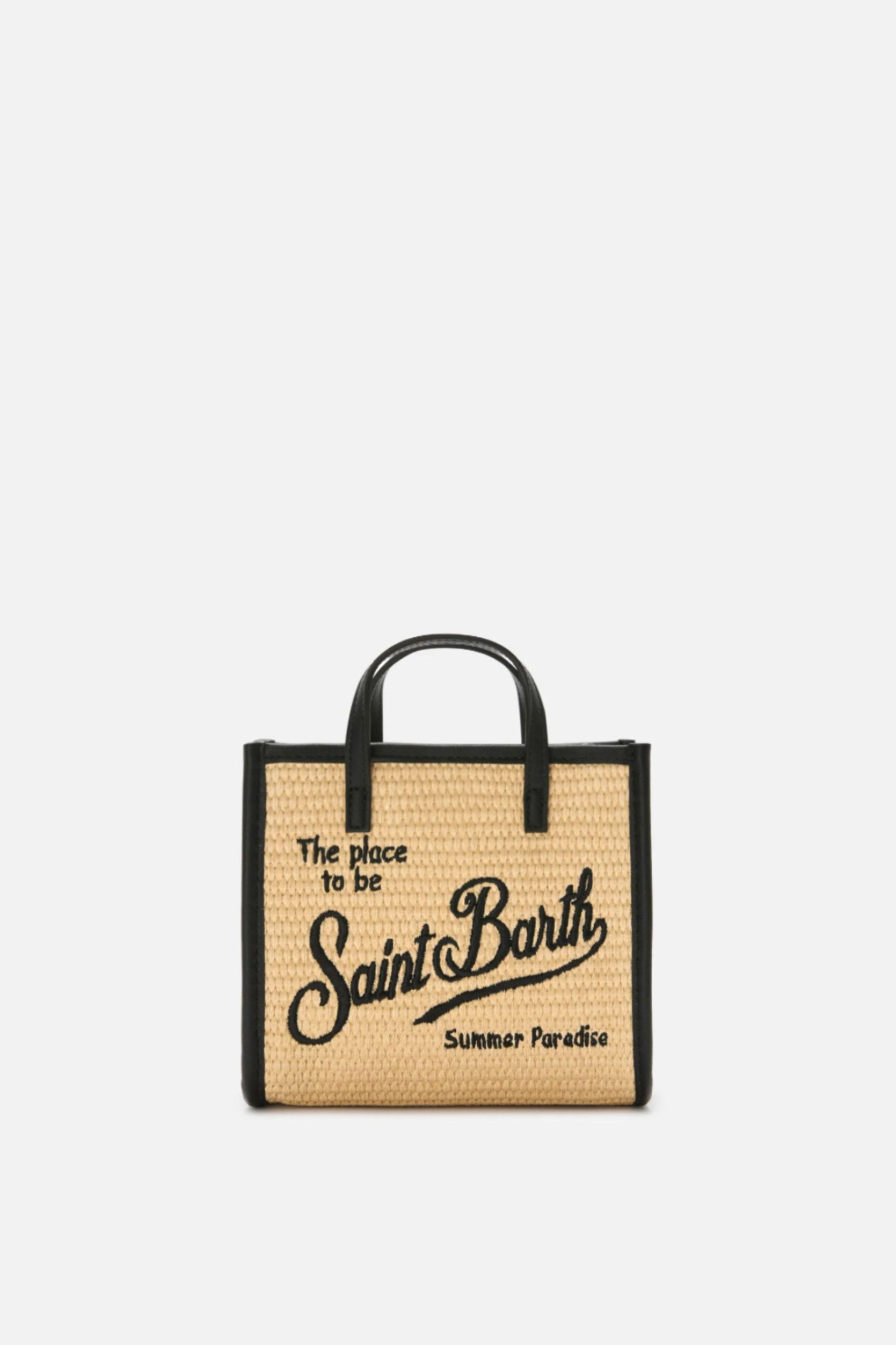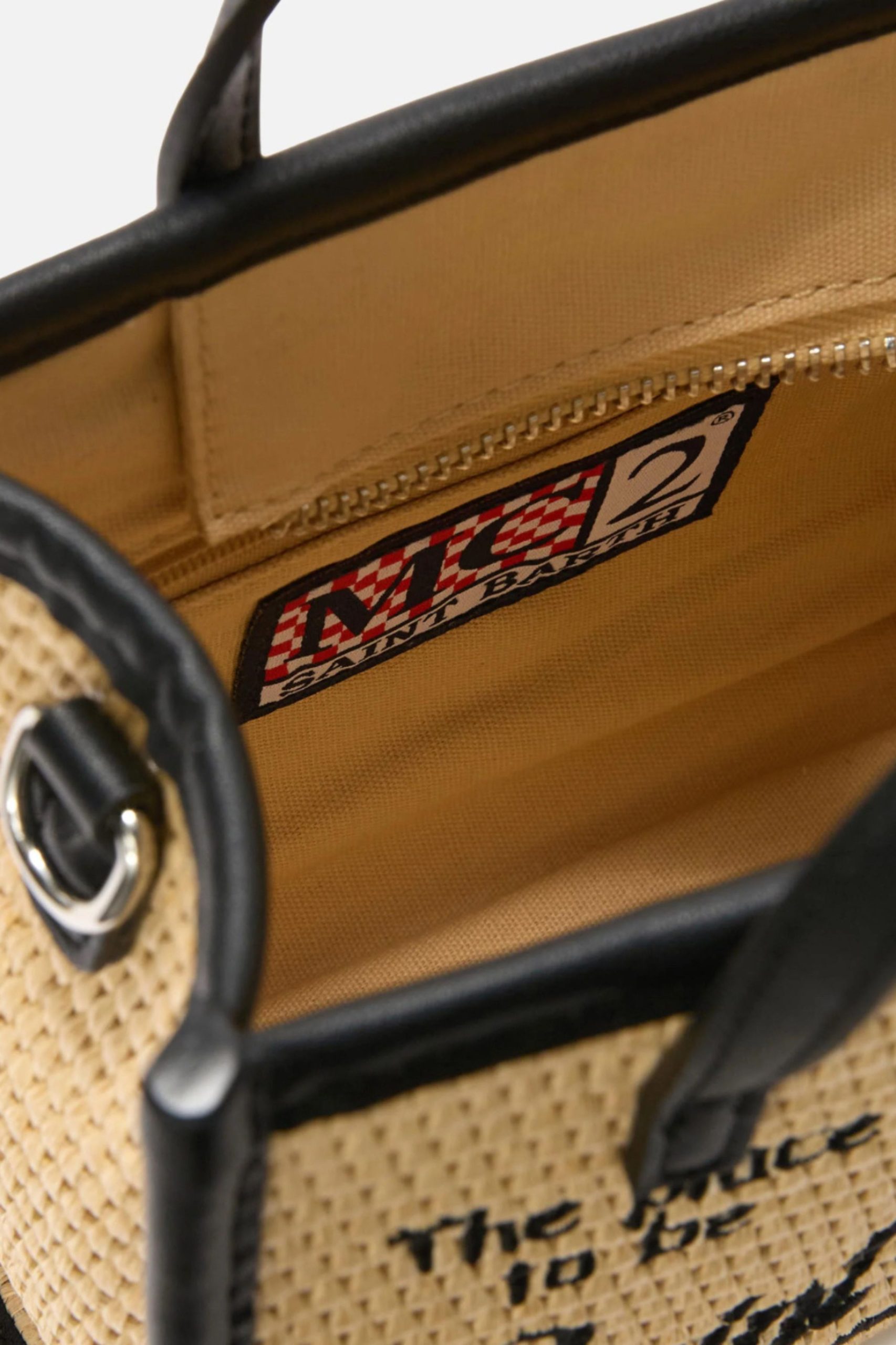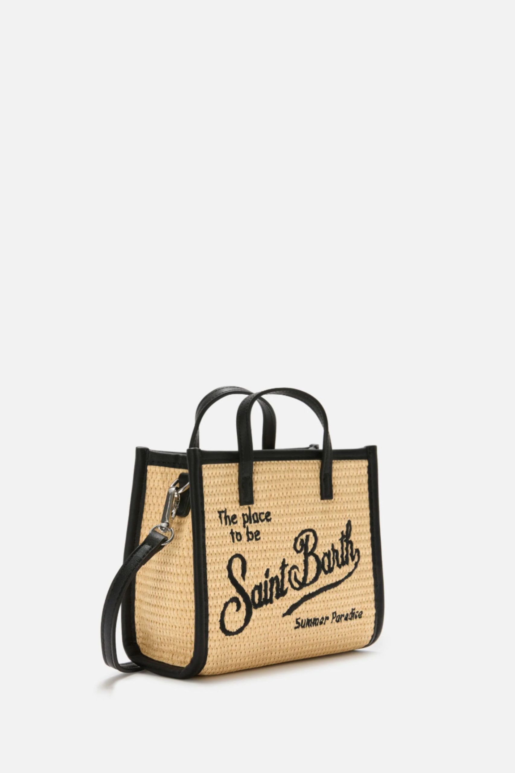 Μίνι τσάντα Vivian με εφέ ψάθας και μαύρο κεντημένο λογότυπο