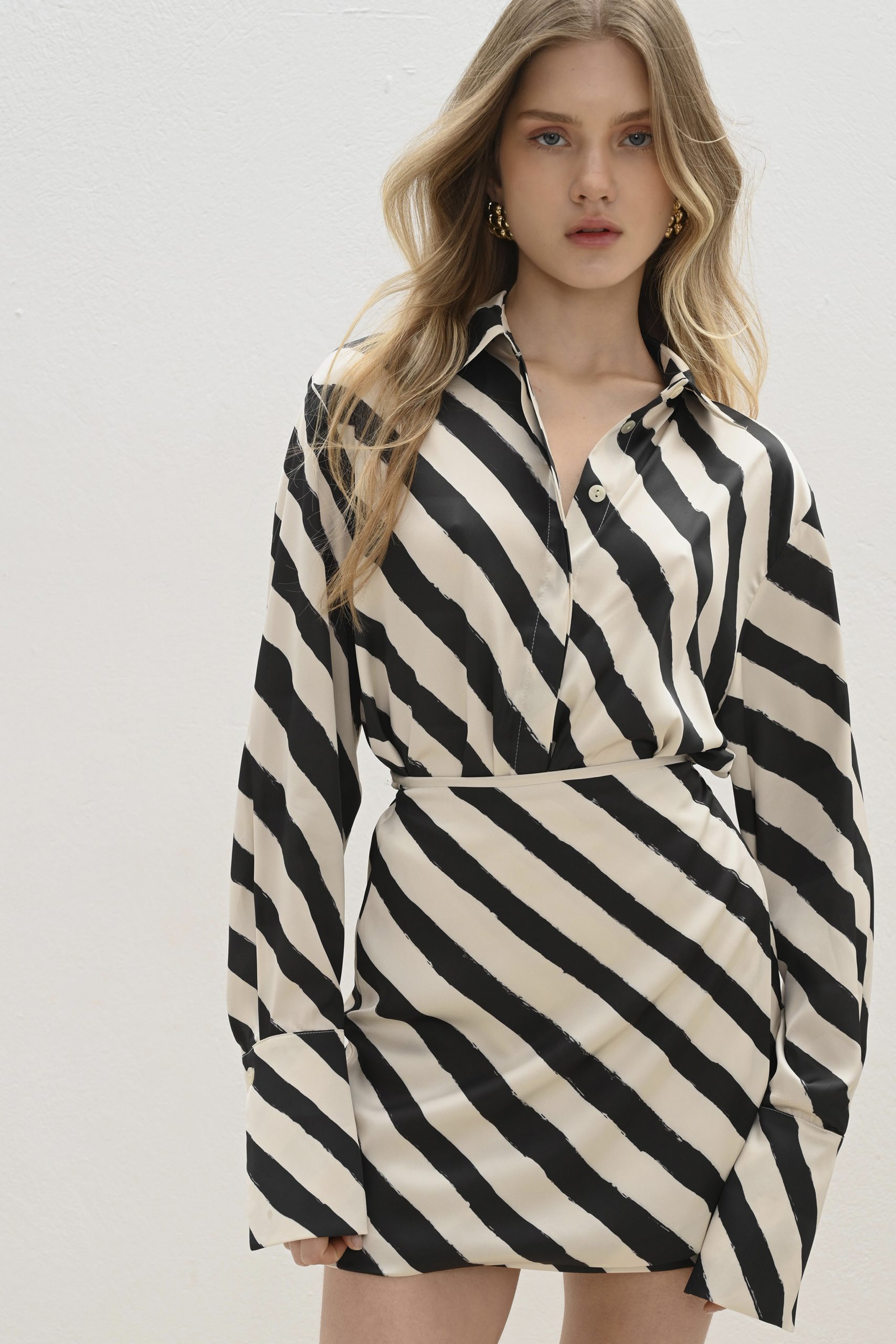Μίνι φούστα “φάκελος” με ασπρόμαυρες ρίγες.