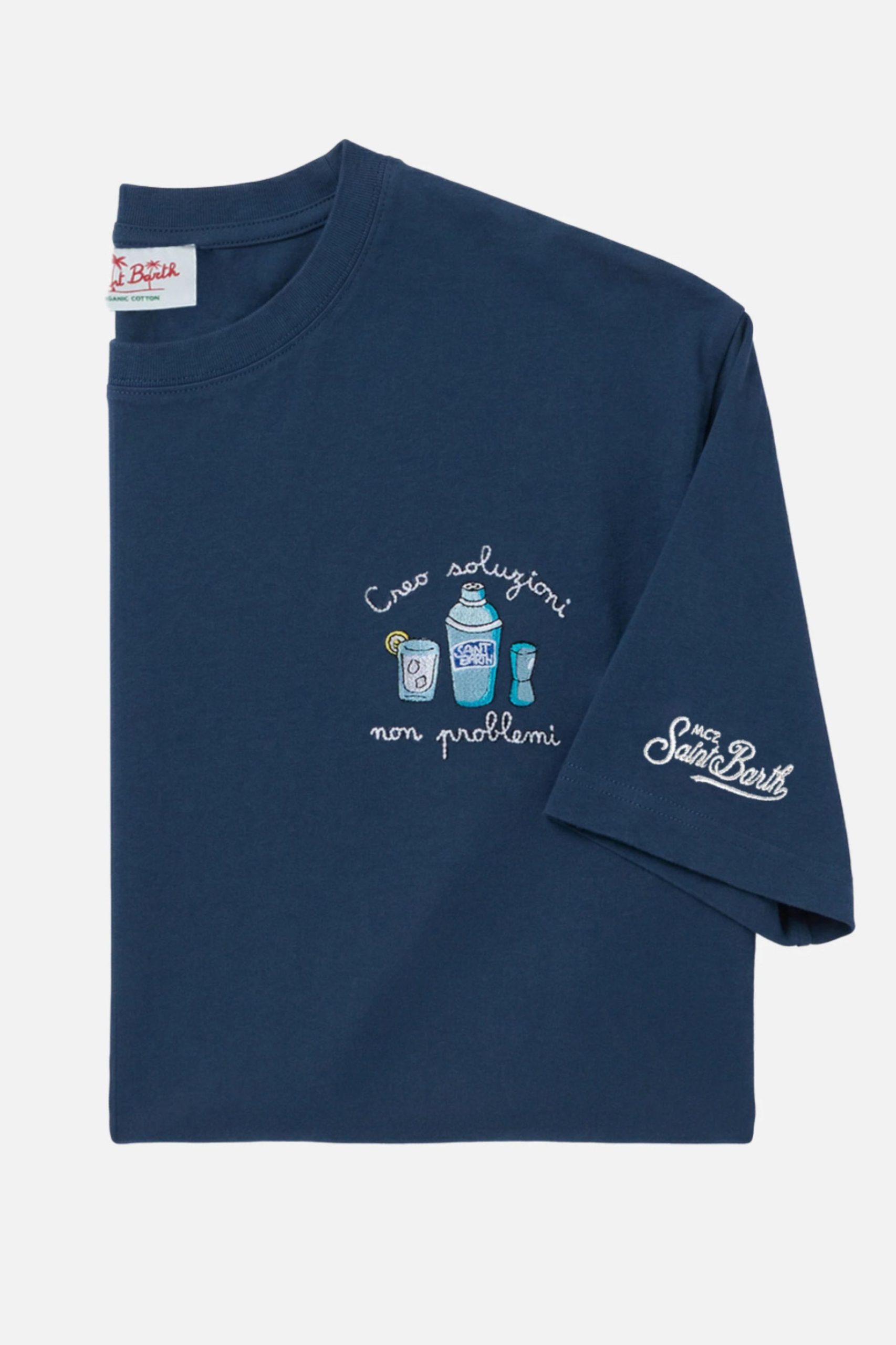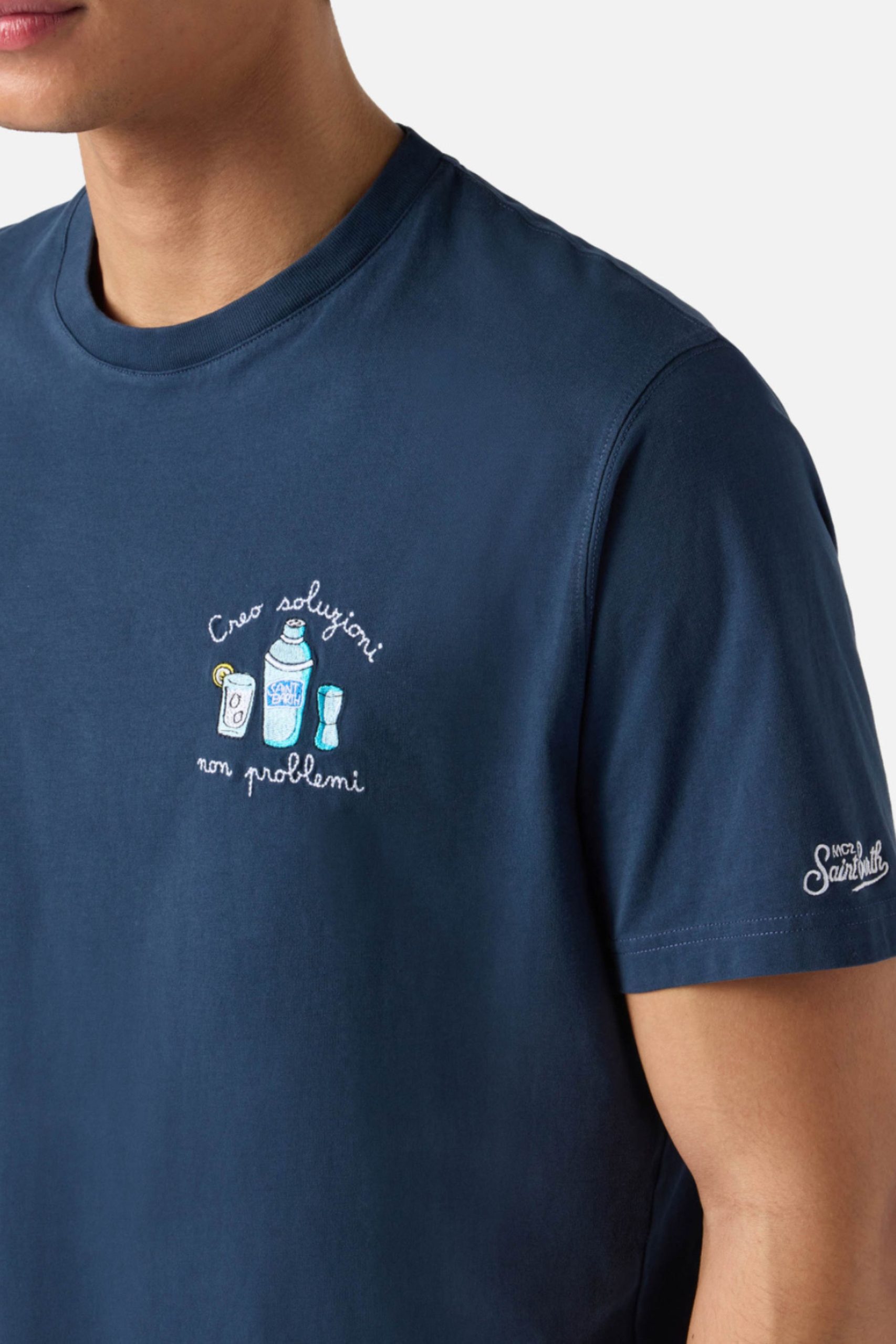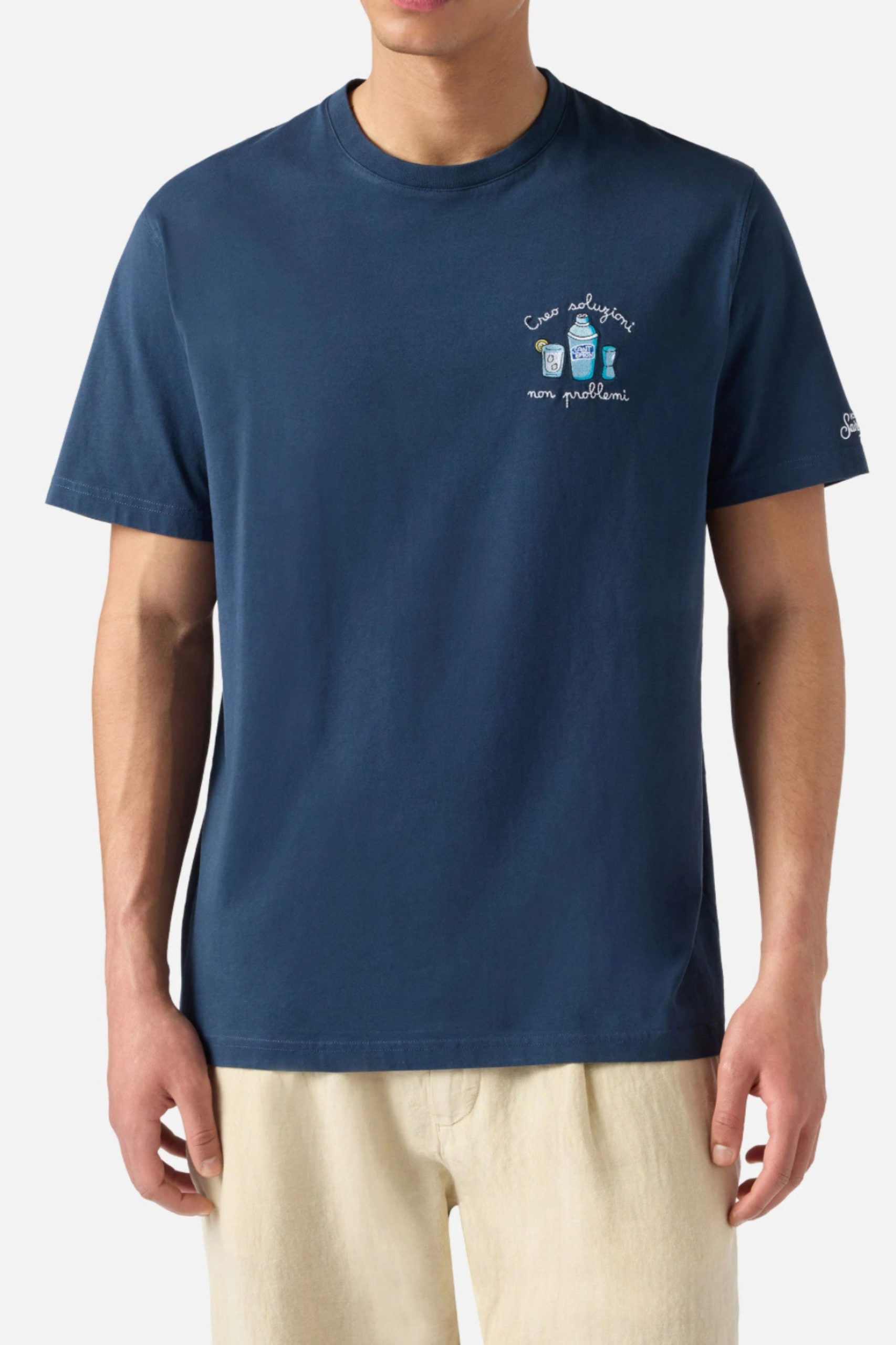 Μπλε μπλουζάκι Portofino με κέντημα Creo Soluzioni Non Problemi