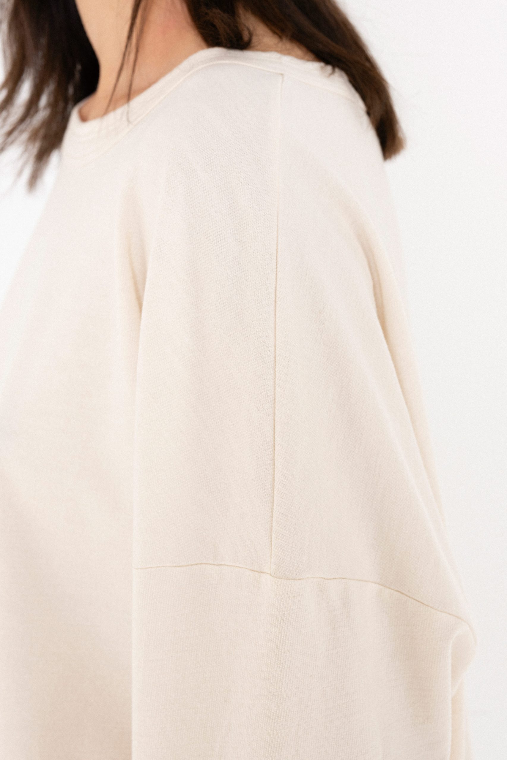 Φούτερ σε χαλαρή γραμμή με minimal γραμμές και διαχρονικό χαρακτήρα. Διαθέτει στρογγυλή λαιμόκοψη, ελαφρώς πεσμένους ώμους και άνετα μανίκια.