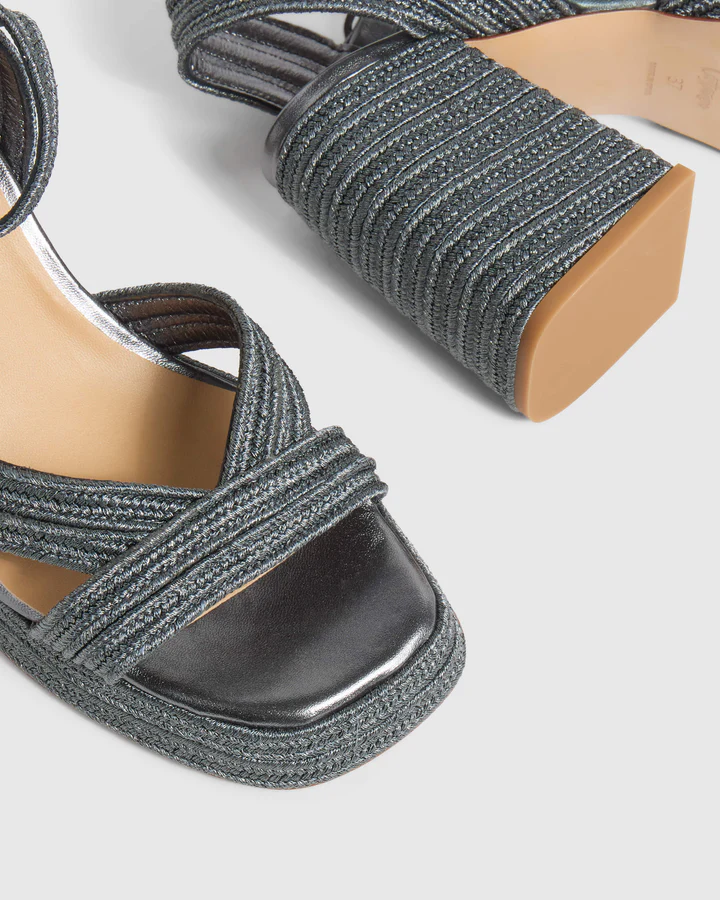 Ψηλοτάκουνα πέδιλα με χοντρό τακούνι 10 cm σε σχήμα V. Κλείνει με μπαρέτα στο ύψος του αστραγάλου.
