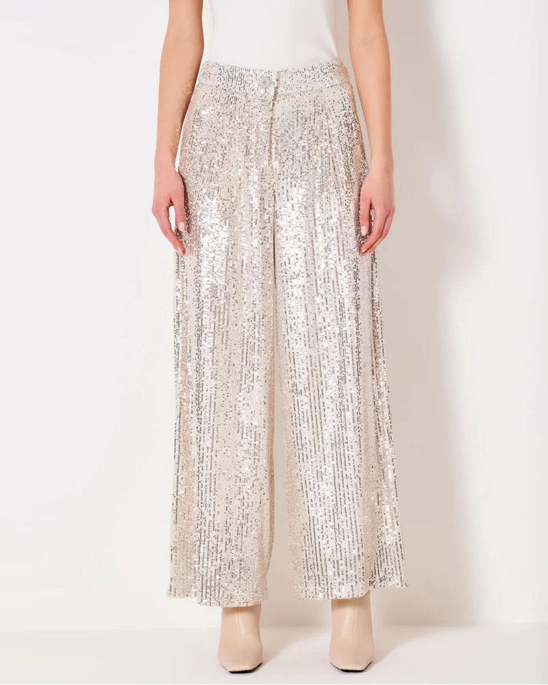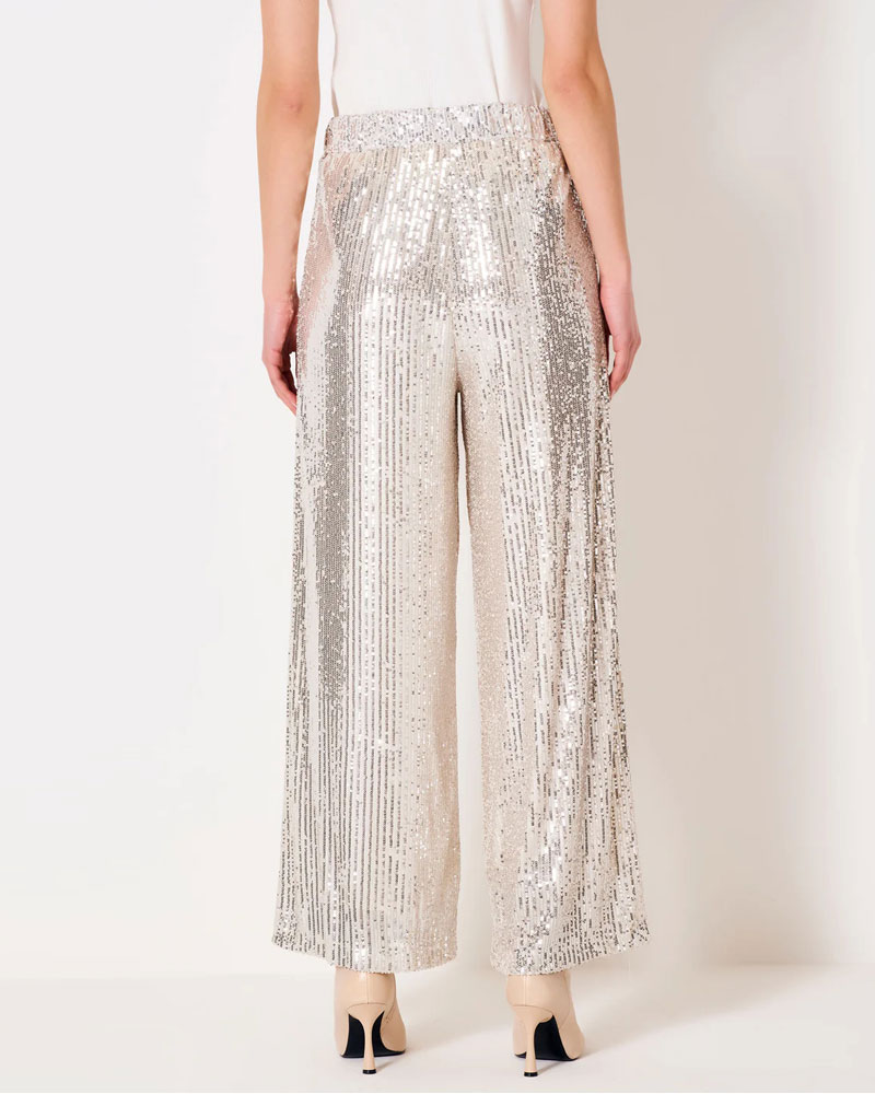 Παντελόνα σε ίσα χαλαρή γραμμή με all-over σχέδιο από παγιέτες.