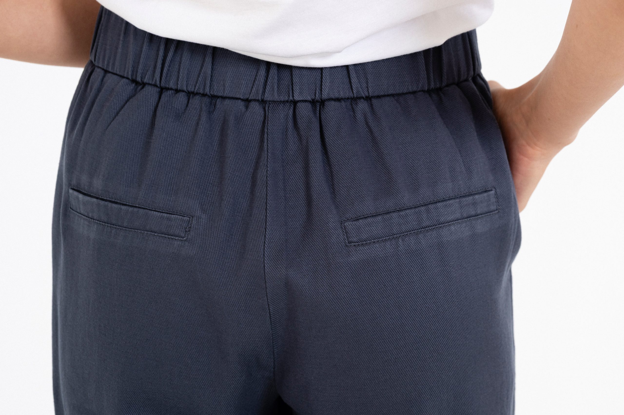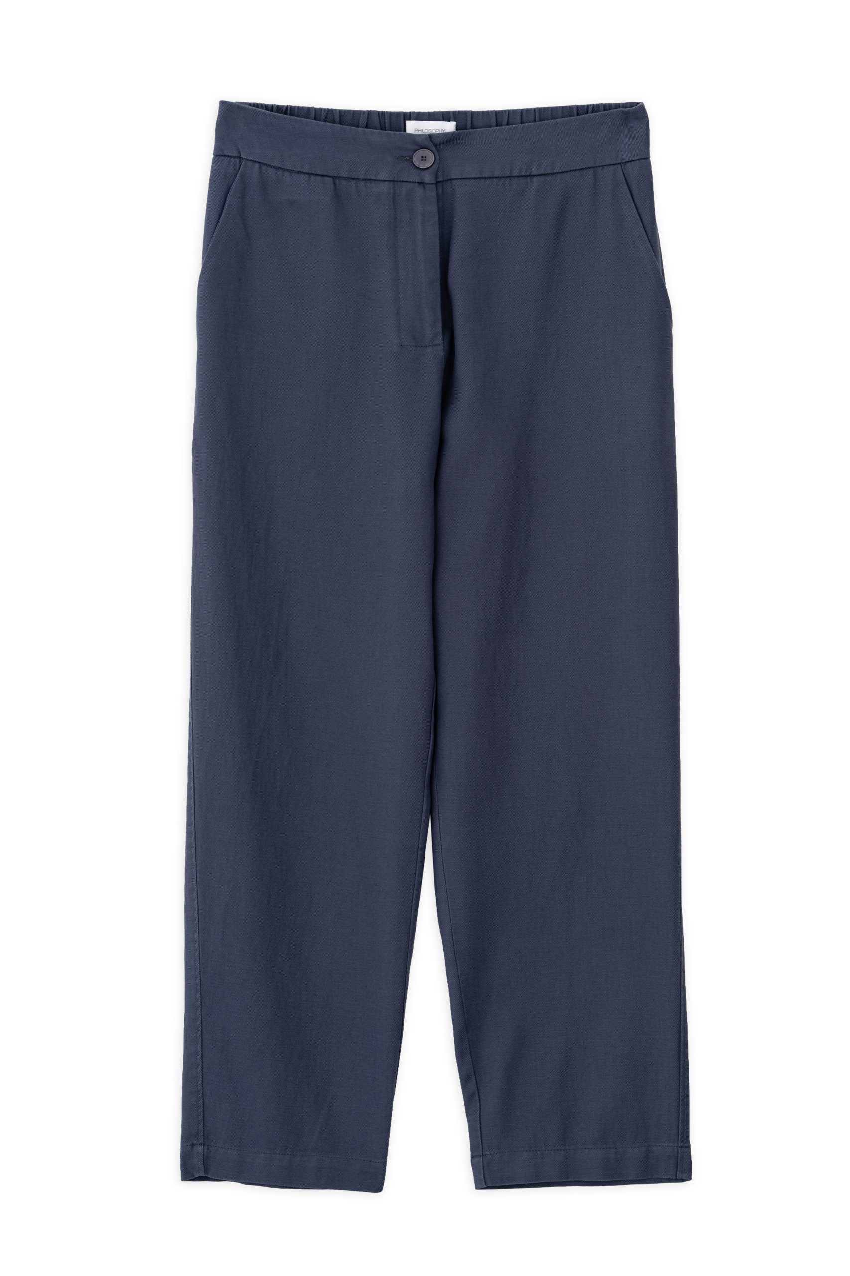 Λινό παντελόνι σε χαλαρή και ίσια cropped γραμμή. Διαθέτει ψηλόμεση εφαρμογή με λάστιχο στη μέση για μεγαλύτερη άνεση. Κλείνει με κουμπί και φερμουάρ.