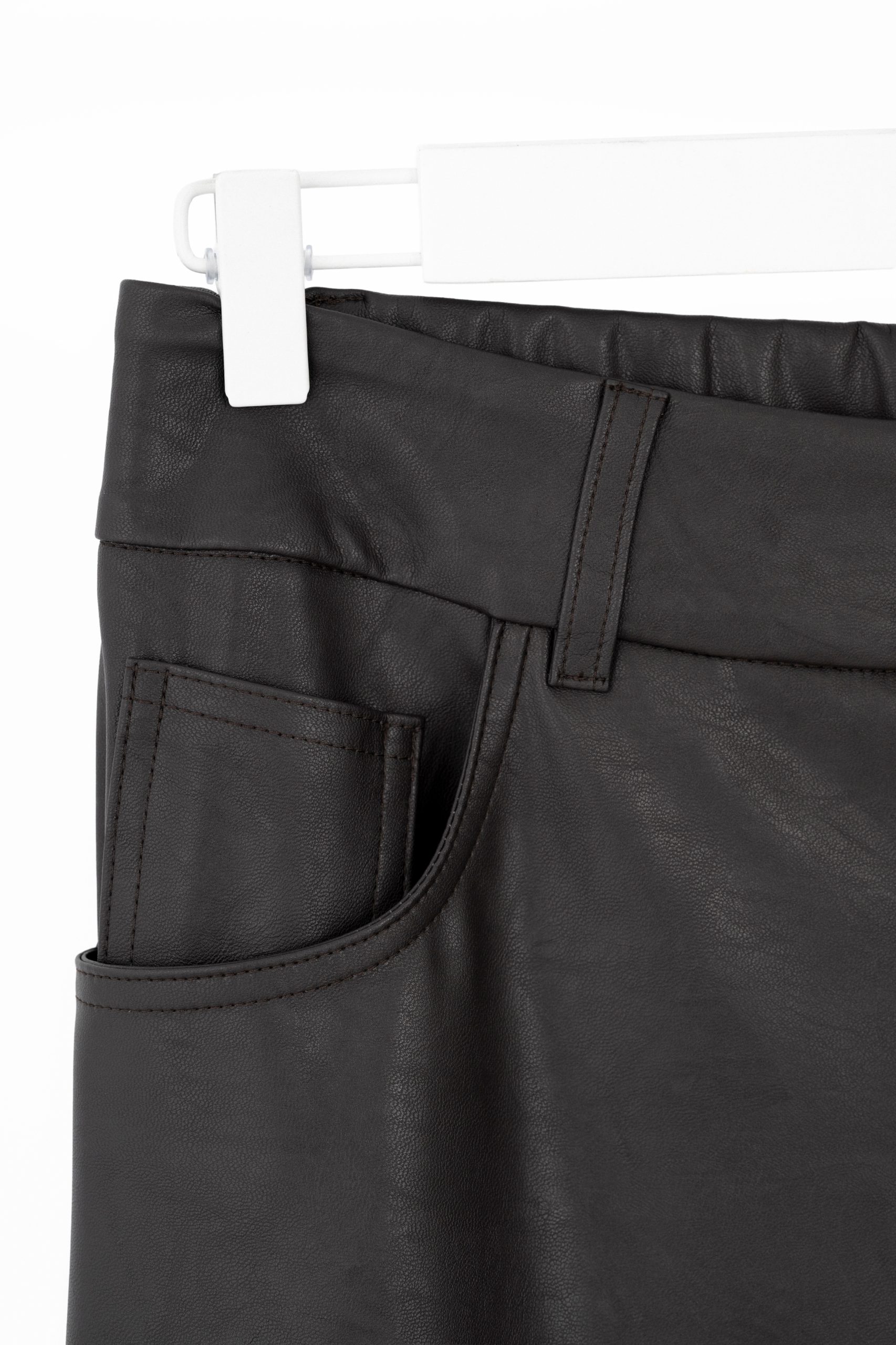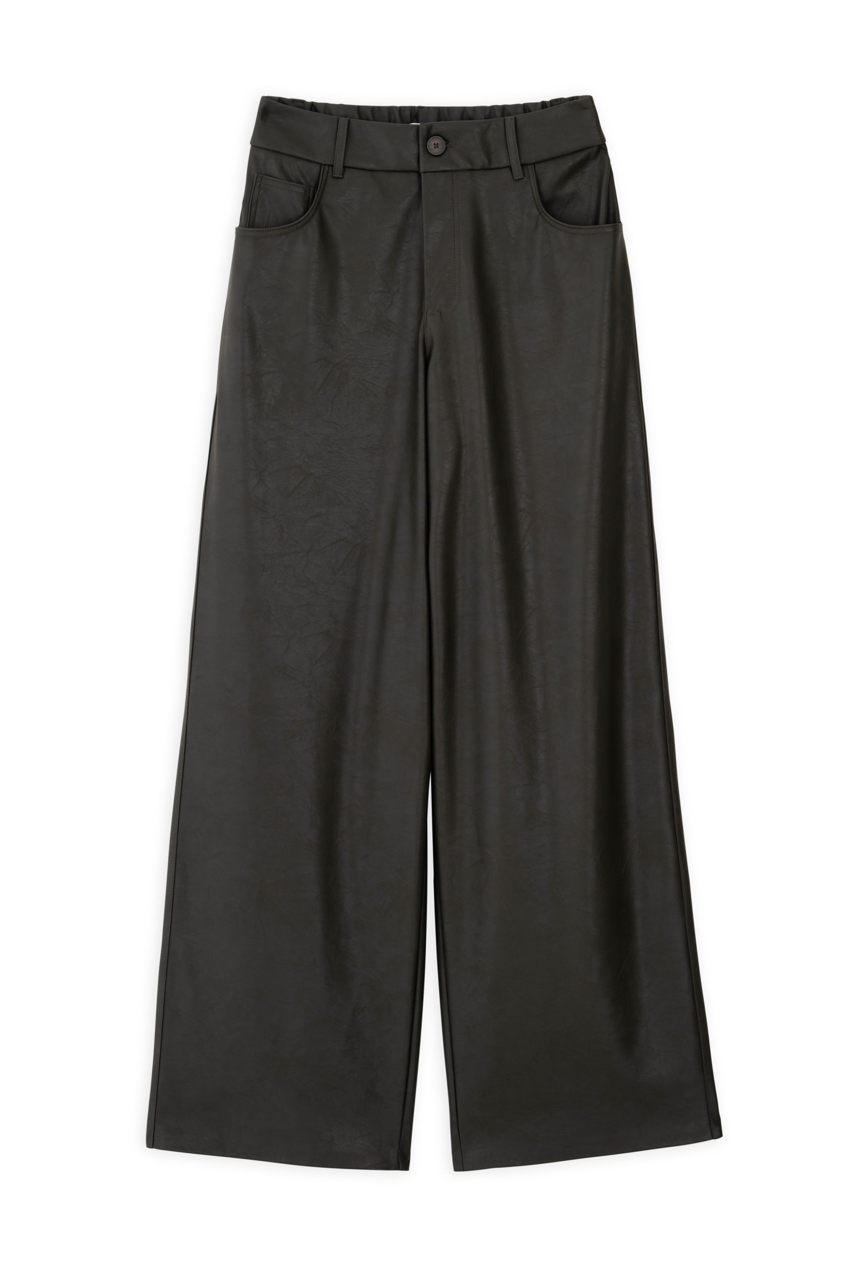 Δερμάτινη παντελόνα με φαρδιά παντζάκια, συνδυάζει την άνεση με τον δυναμικό χαρακτήρα, προσφέροντας ένα κομψό και μοντέρνο αποτέλεσμα. Η παντελόνα κλείνει με φερμουάρ και κουμπί, εξασφαλίζοντας άψογη εφαρμογή και σφιχτό κράτημα στη μέση. Οι μπροστινές και πίσω τσέπες προσφέρουν πρακτικότητα, ενώ τα φαρδιά παντζάκια δημιουργούν μία χαλαρή και σικ αίσθηση, ιδανική για σύγχρονα και statement looks.