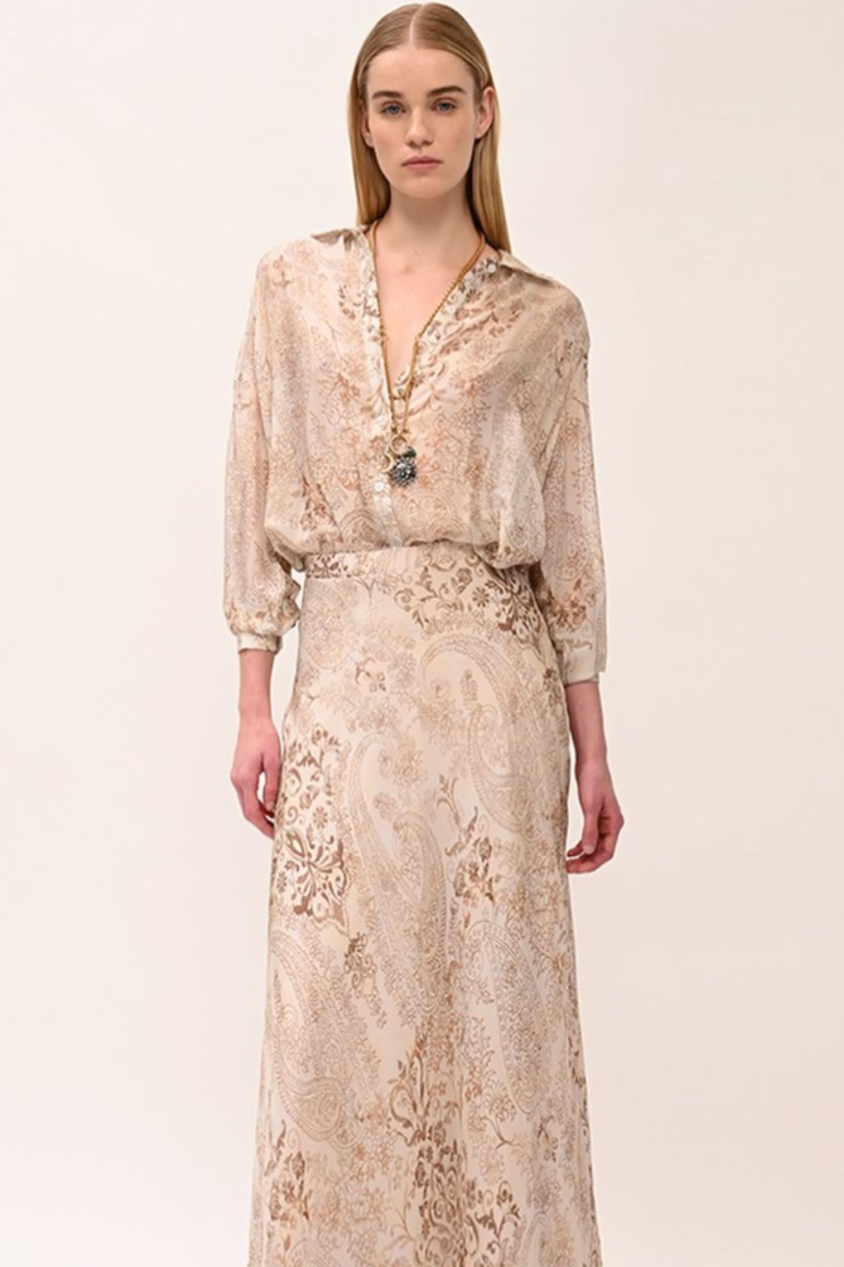Ημιδιάφανο μακρυμάνικο πουκάμισο από βισκόζη. Διαθέτει κλασικό γιακά. Κλείνει με κουμπιά.