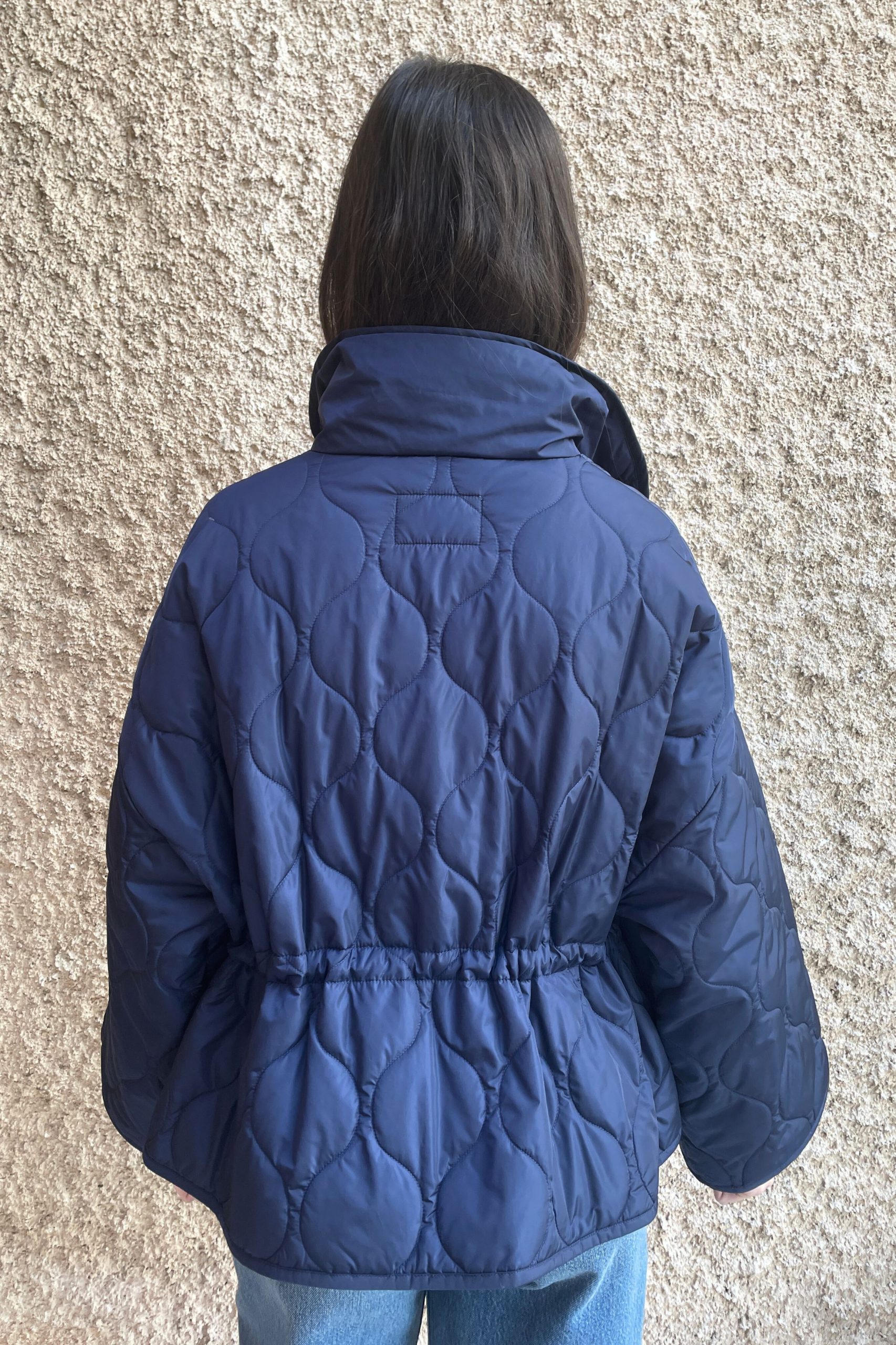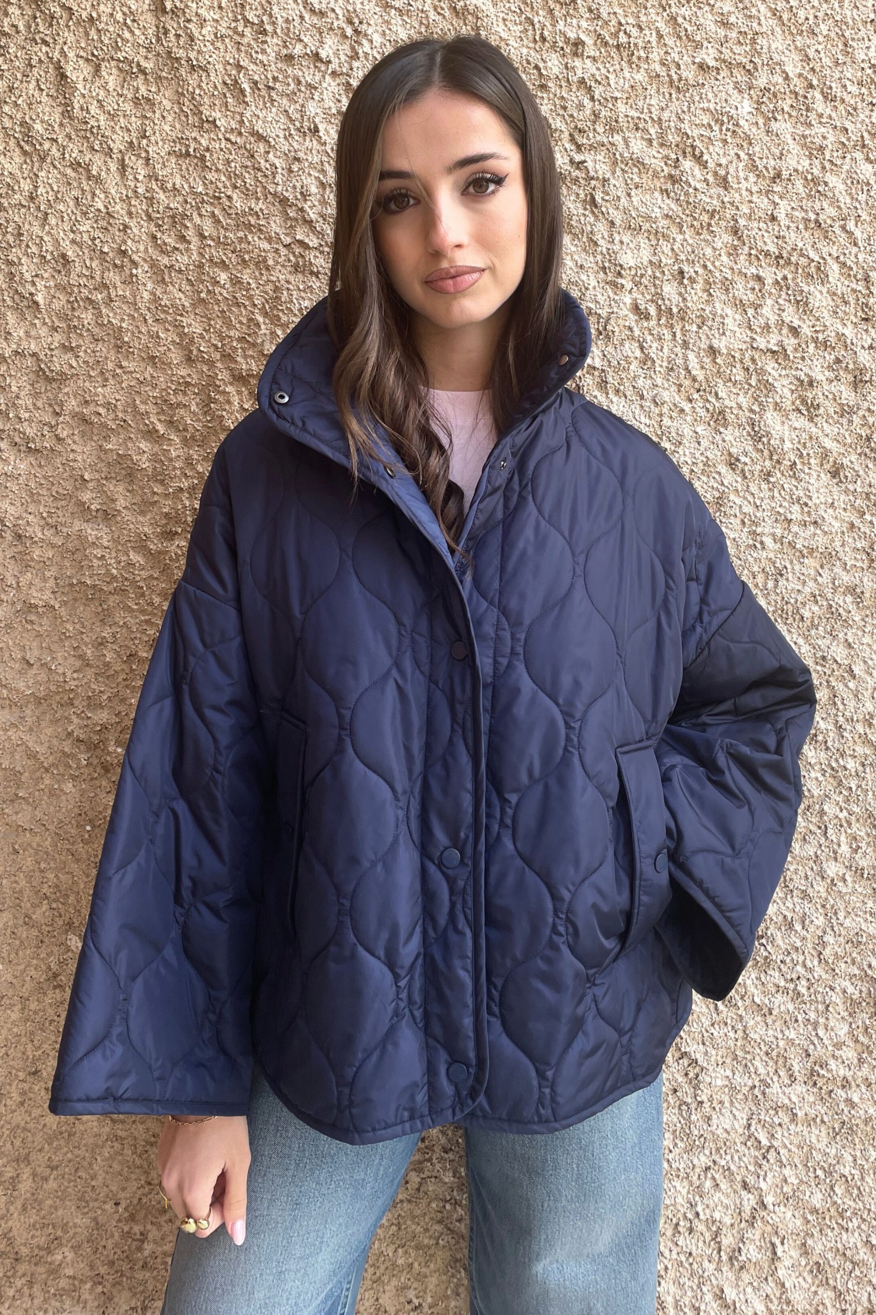 Καπιτονέ τζάκετ σε boxy γραμμή με απαλή γεωμετρική ραφή, που προσφέρει ελαφριά θερμότητα και άνεση. Διαθέτει ψηλό γιακά και πλαϊνές τσέπες. Κλείνει με κουμπιά στο μπροστινό μέρος.
