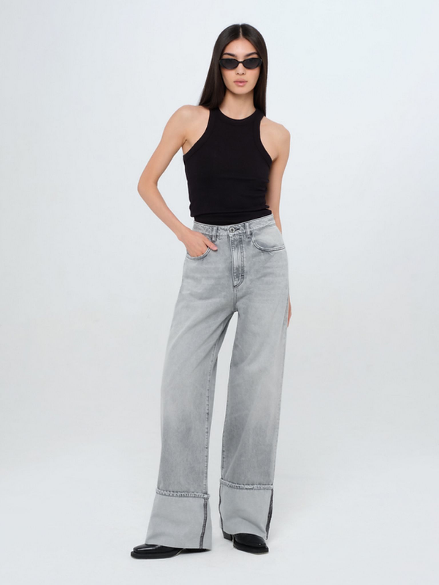 Τζιν κανονικής εφαρμογής με φαρδύ μπατζάκι και σταθερό ύφασμα.