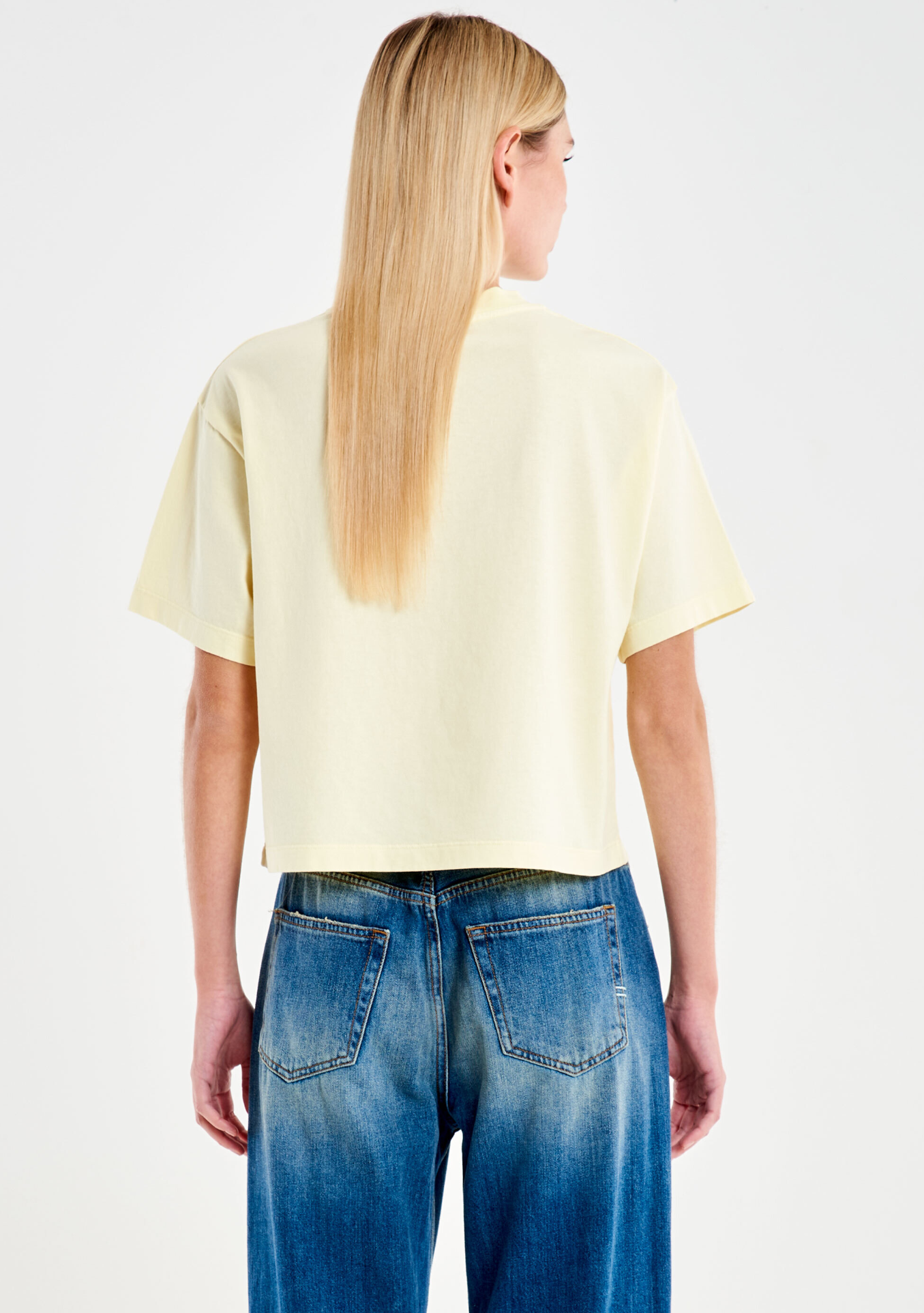 Μπλούζα cropped με κοντό μανίκι και στρογγυλή λαιμόκοψη.