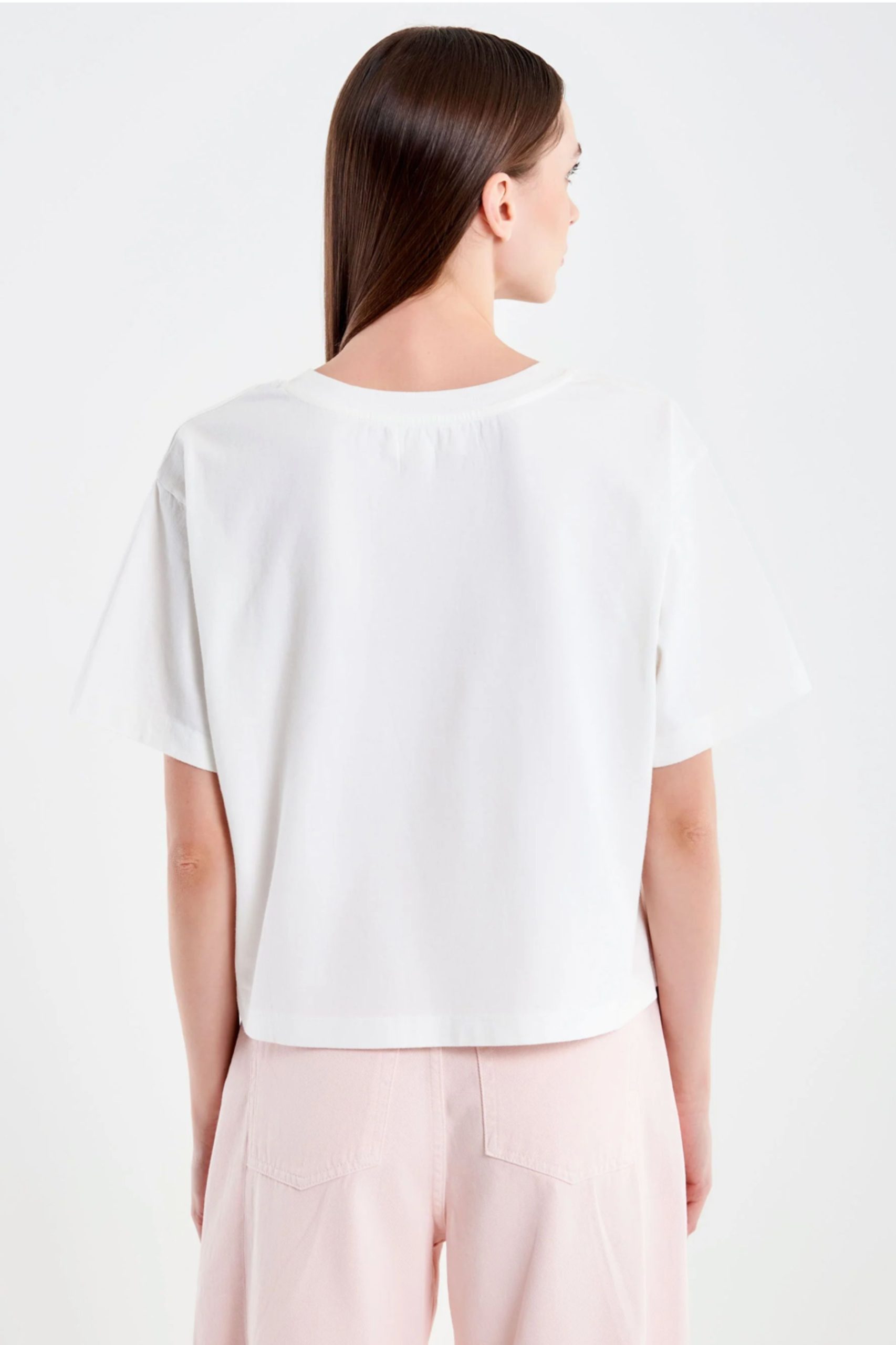 Μπλούζα cropped με κοντό μανίκι και στρογγυλή λαιμόκοψη.