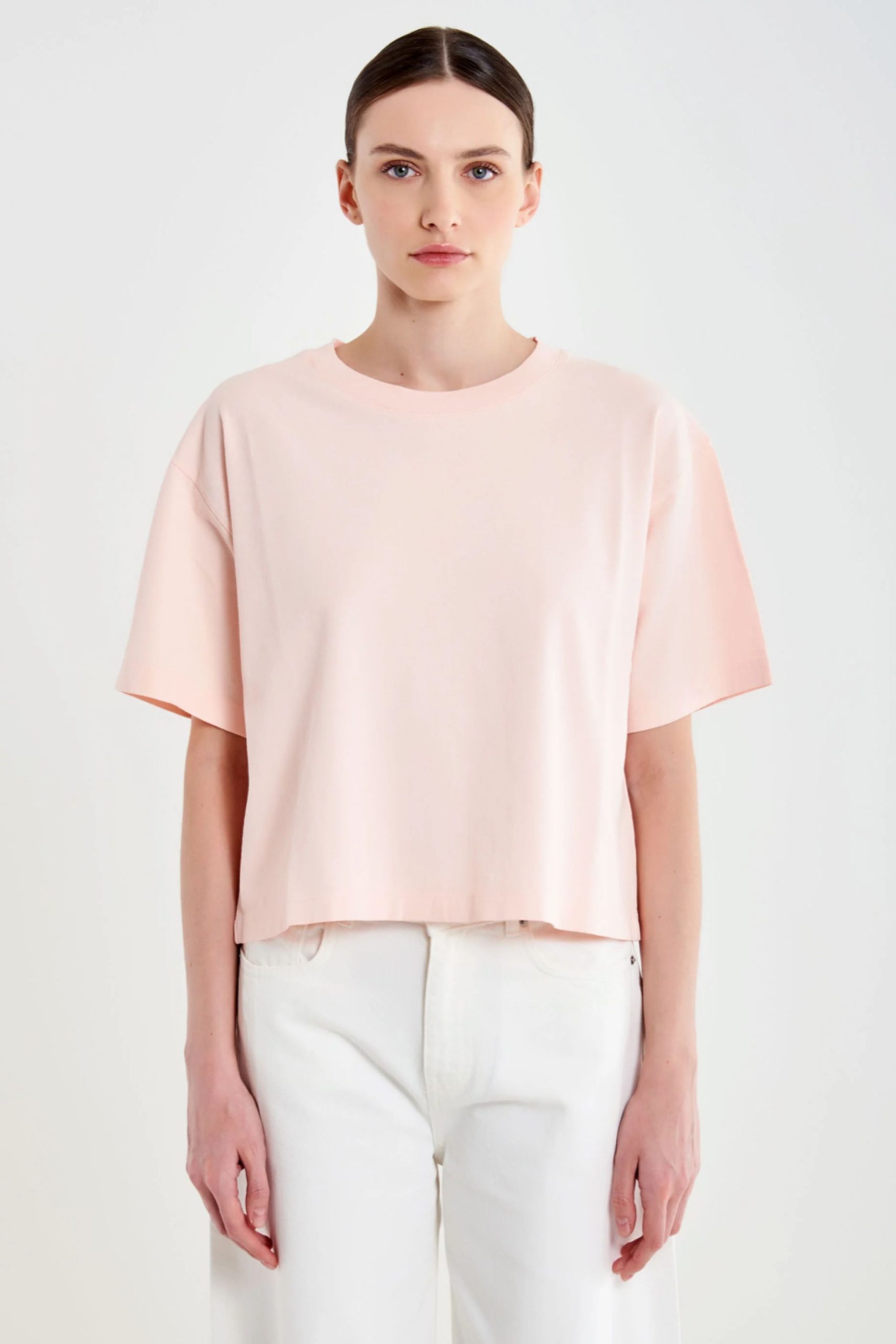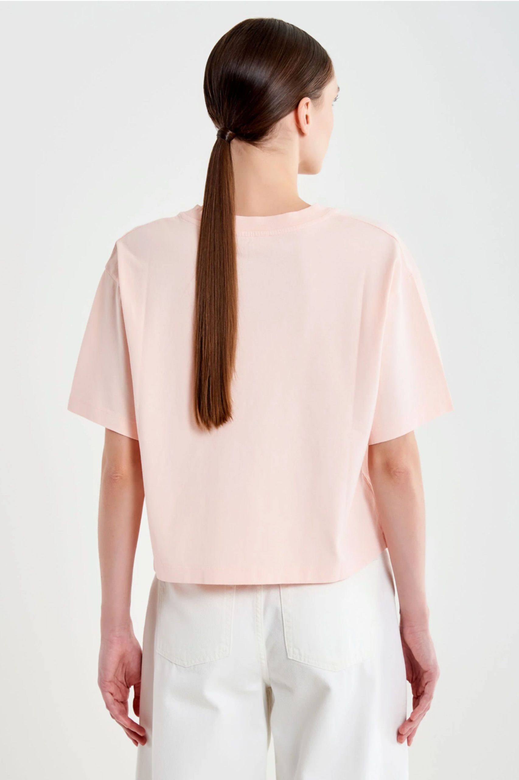 Μπλούζα cropped με κοντό μανίκι και στρογγυλή λαιμόκοψη.