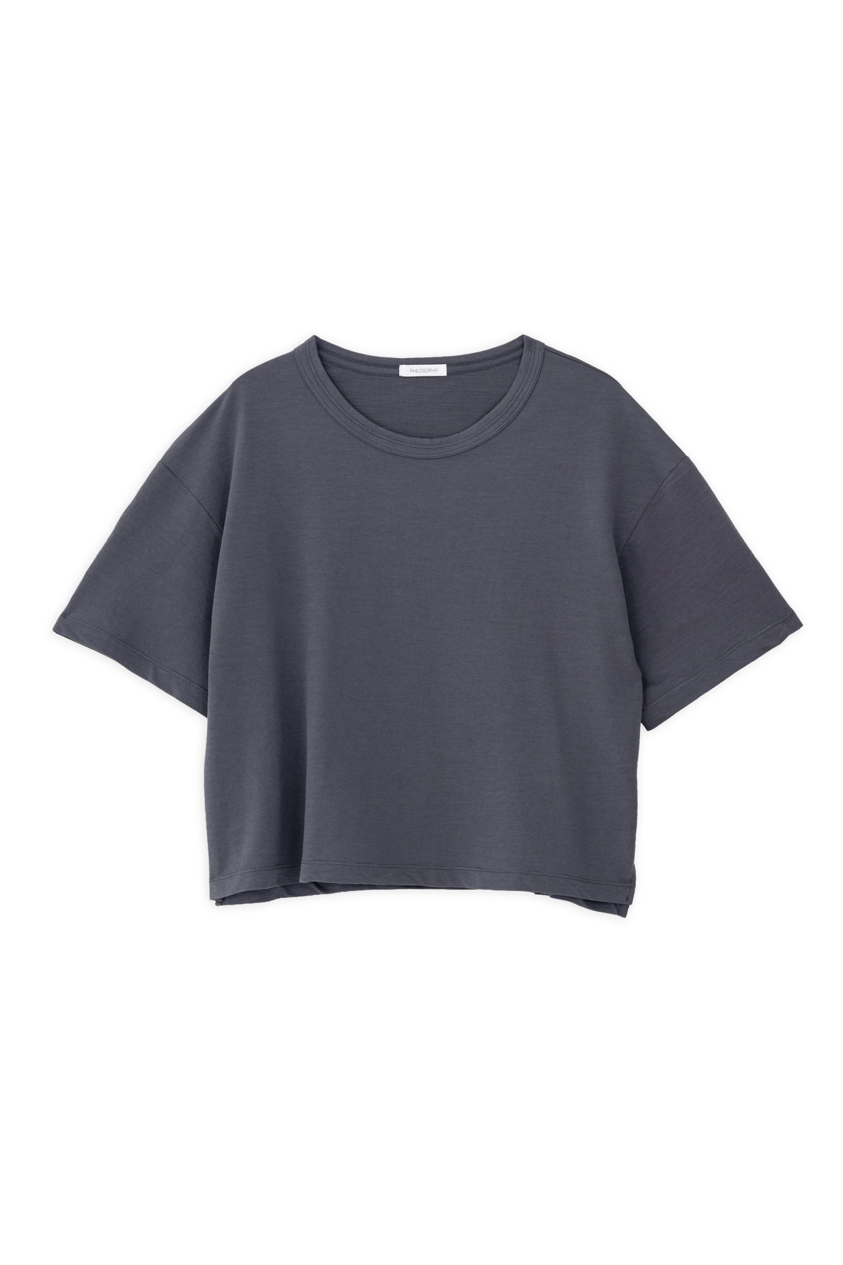 Βαμβακερό cropped μπλουζάκι με στρογγυλή λαιμόκοψη και κοντό μανίκι.