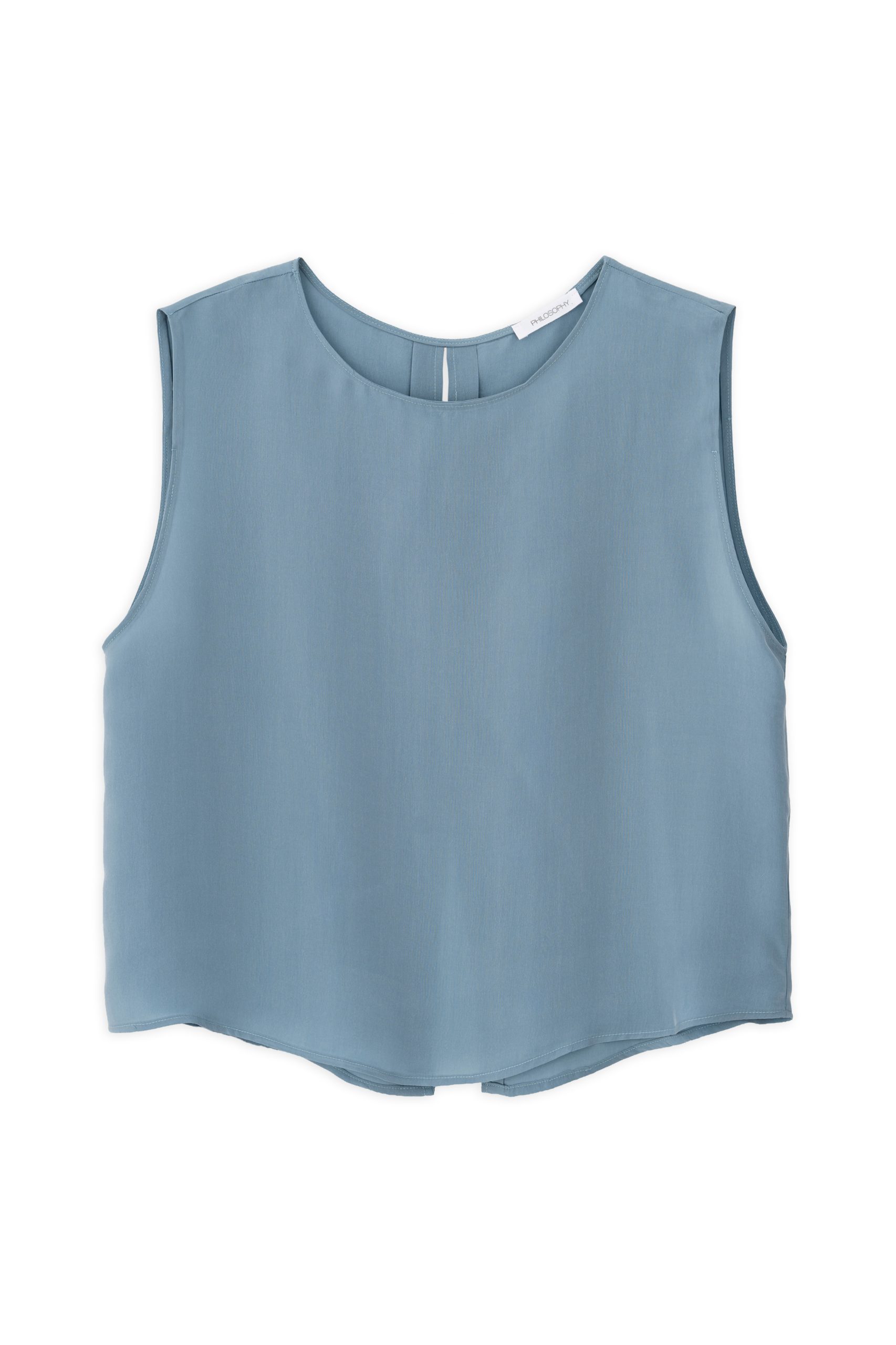 Αμάνικο τοπ με minimal γραμμές και διαχρονική αισθητική. Διαθέτει στρογγυλή λαιμόκοψη και άνετη εφαρμογή. Στο πίσω μέρος του ξεχωρίζει το κάθετο άνοιγμα στο τελείωμα.
