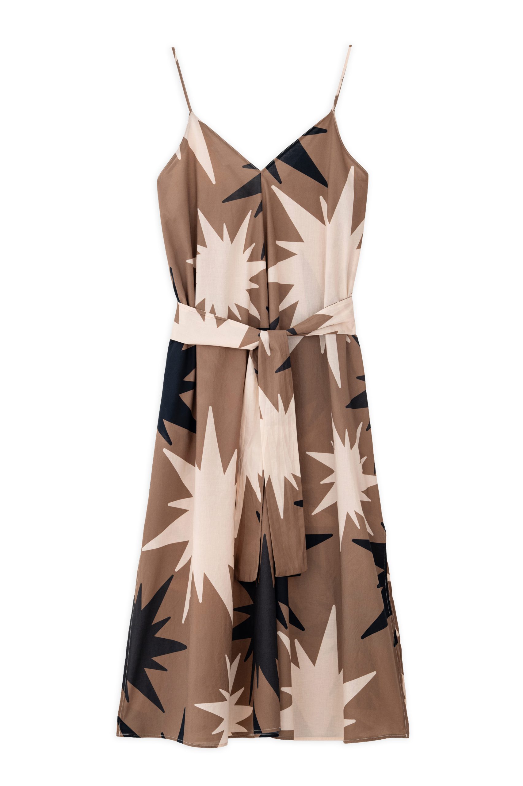 Τιραντέ βαμβακερό μίντι φόρεμα σε φαρδιά γραμμή. Διαθέτει αποσπώμενη ζώνη.