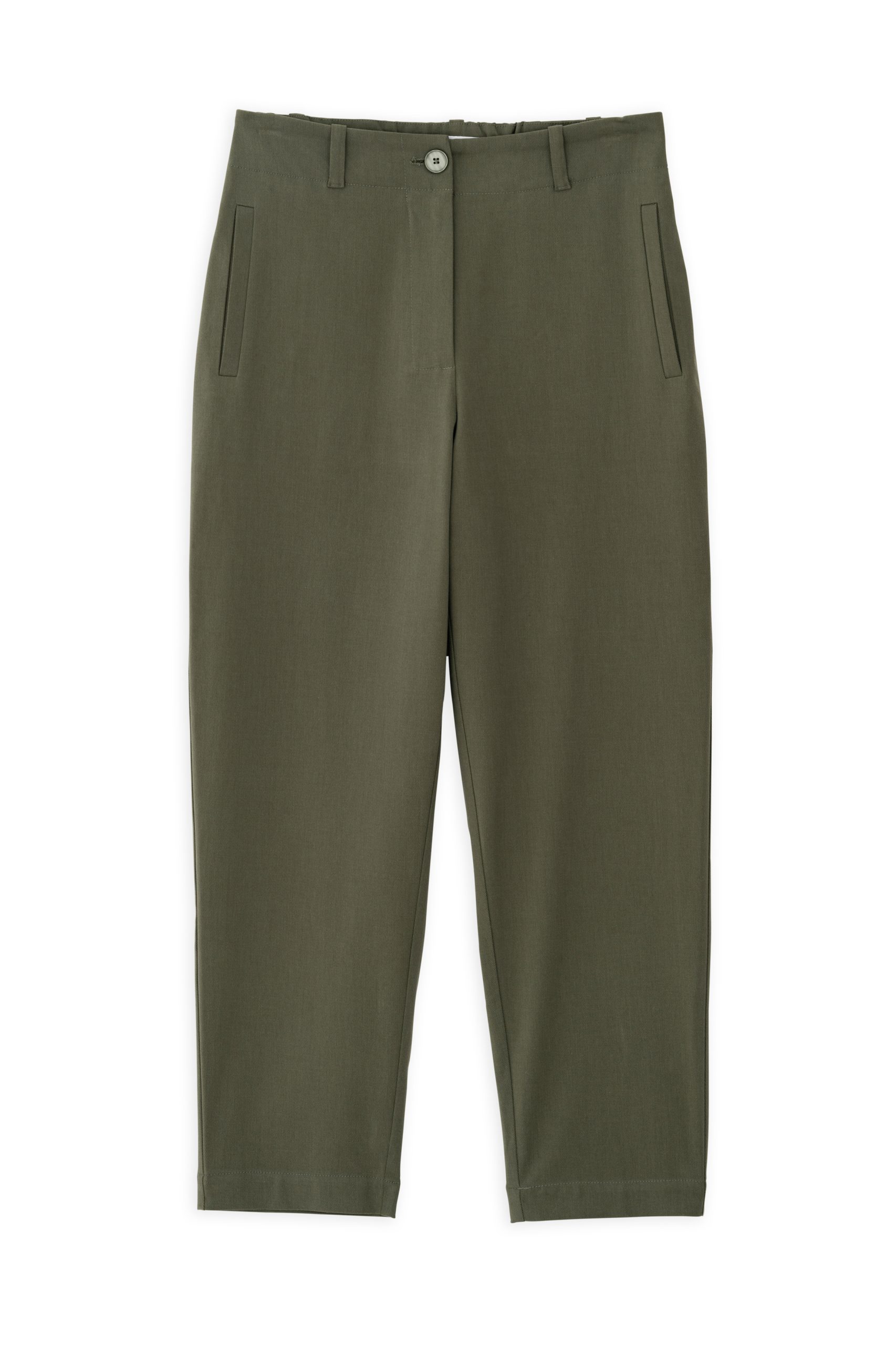 Ψηλόμεσο παντελόνι κατασκευασμένο από υψηλής ποιότητας Lyocell ύφασμα. Το παντελόνι αυτό συνδυάζει την κομψότητα με την άνεση, προσφέροντας μαλακή και ελαστική αίσθηση στην επιδερμίδα. Το σχέδιο του περιλαμβάνει τσέπες τόσο στο μπροστινό όσο και στο πίσω μέρος, για πρακτικότητα και στιλ.