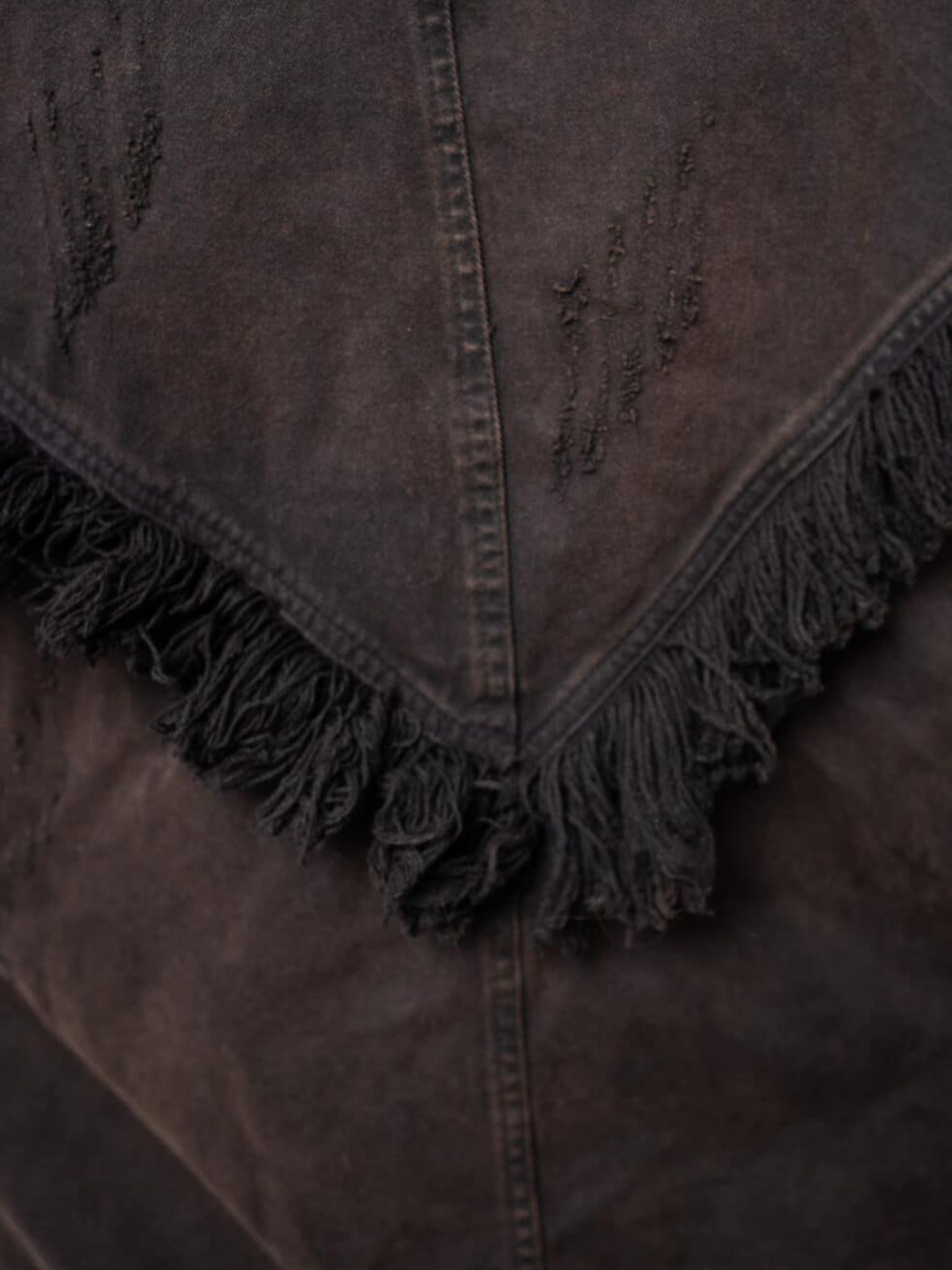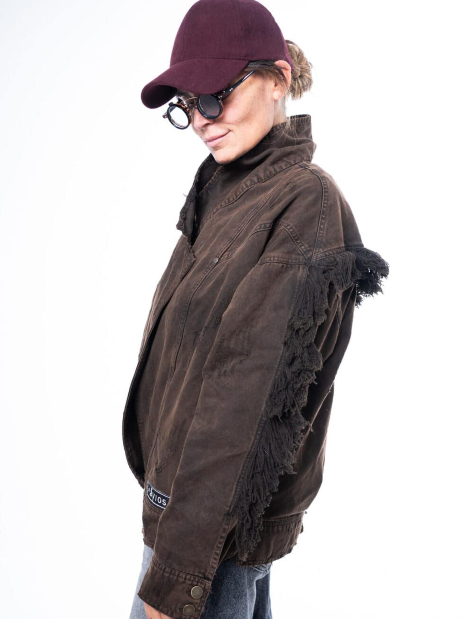 Jacket με western χαρακτήρα κατασκευασμένο από ποιοτικό βαμβακερό ύφασμα με washed φινίρισμα για αυθεντικό vintage look, διαθέτει εντυπωσιακά κρόσσια στην πλάτη και στα μανίκια που κλέβουν τις εντυπώσεις. Ο ιδιαίτερος γιακάς και το ασύμμετρο κλείσιμο με κουμπιά προσφέρουν μοντέρνα γραμμή και άνετη εφαρμογή.