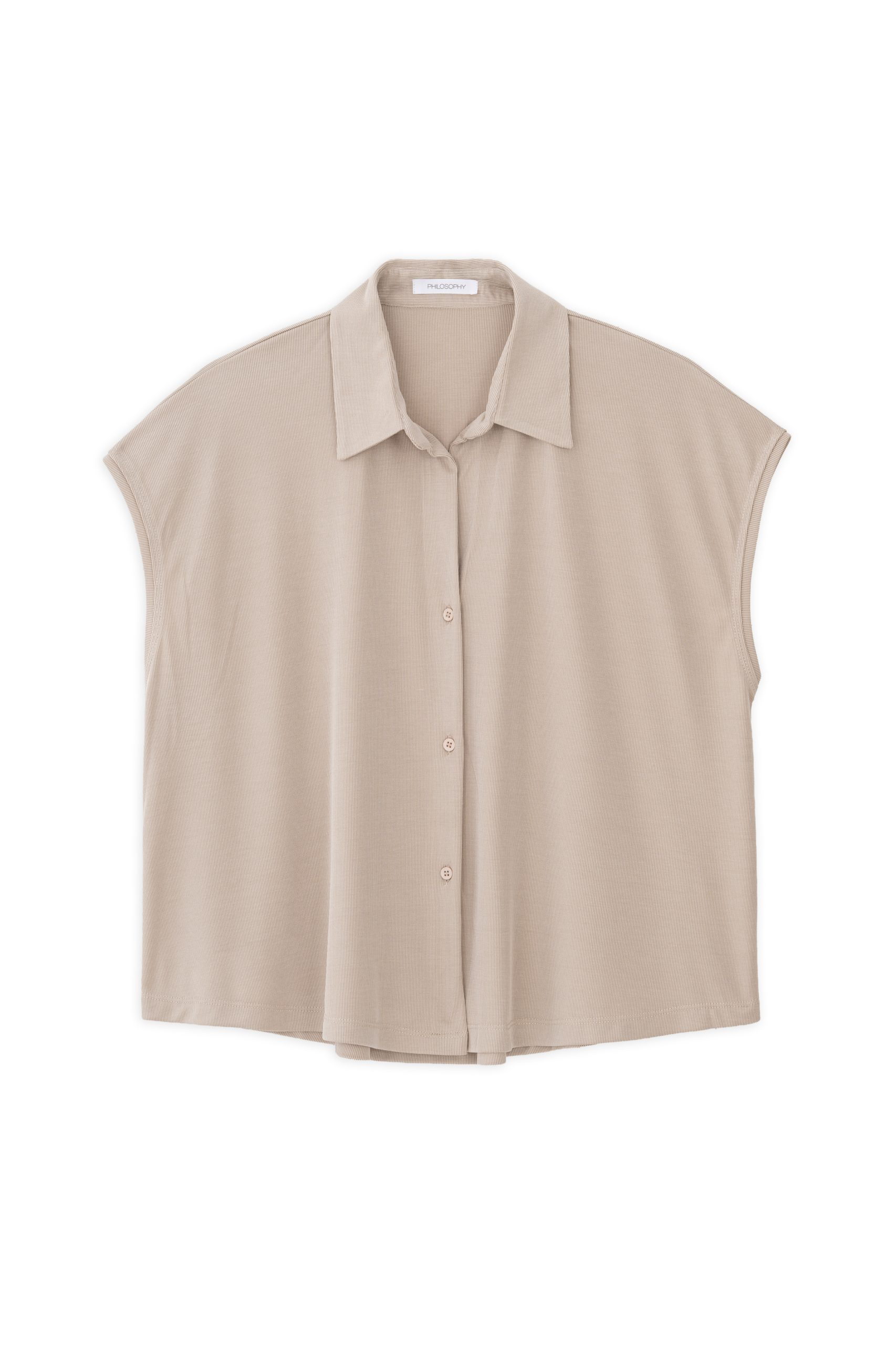 Cropped αμάνικο ριπ πουκάμισο με κουμπιά και κλασικό γιακά.