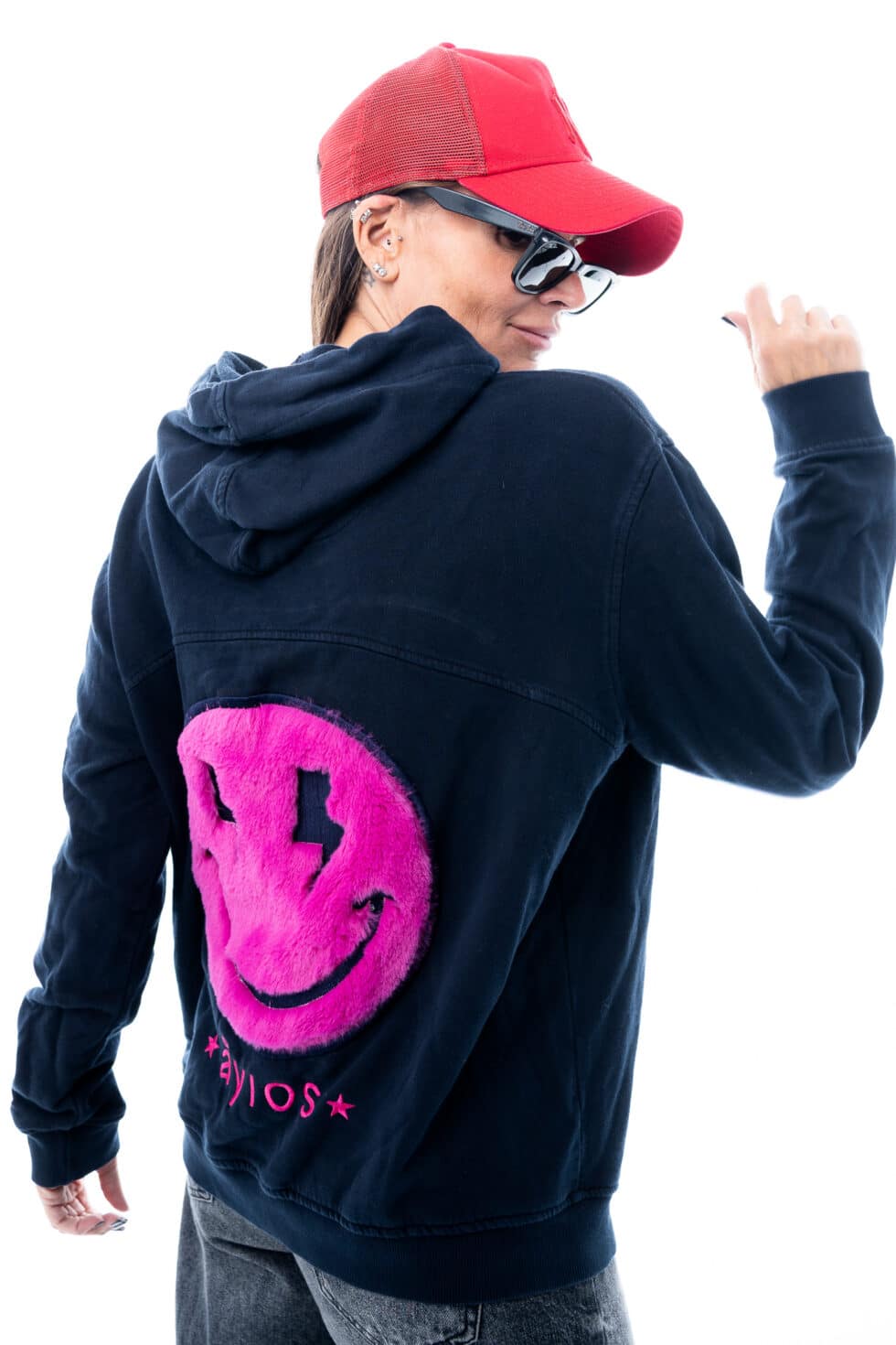 Hoodie Smiley Black Fuxia Face