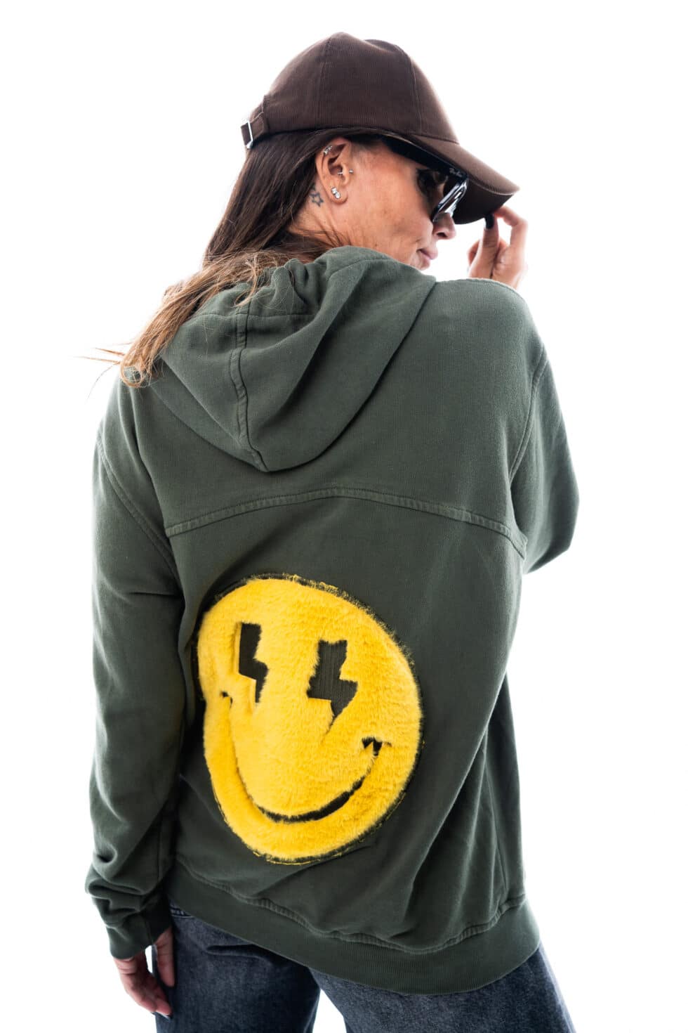 Hoodie Smiley Chaki Yellow Face