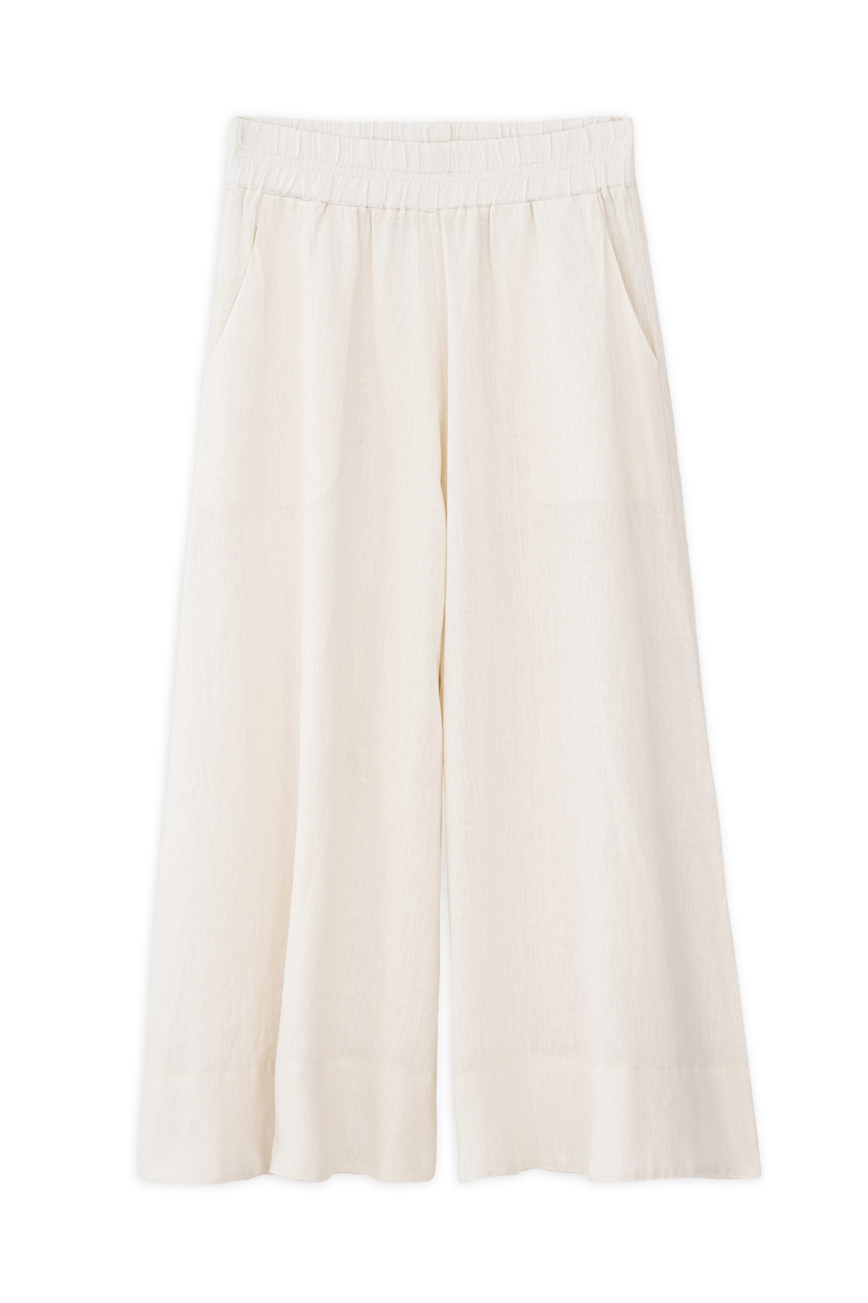 Jupe Culotte από 100% λινό ύφασμα. Διαθέτει λάστιχο στη μέση για καλύτερη εφαρμογή και τσέπες στο πλάι, που προσδίδουν πρακτικότητα και στυλ.