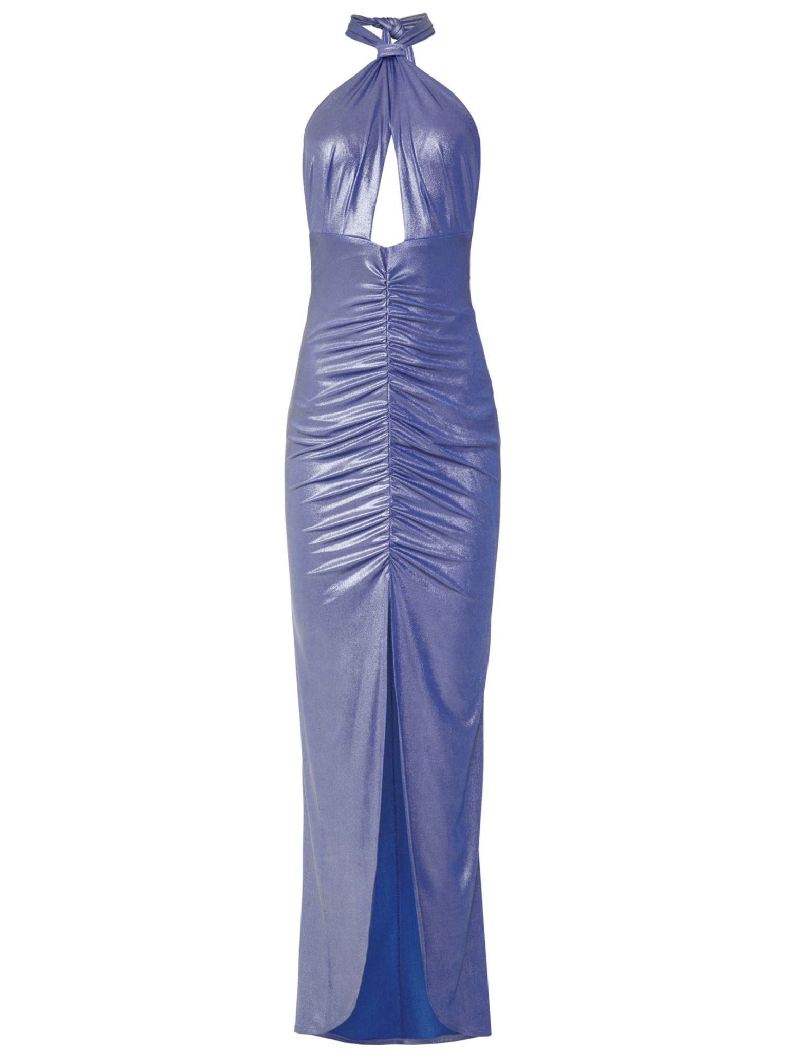 Maxi φόρεμα halter Margot μπλε μεταλιζέ