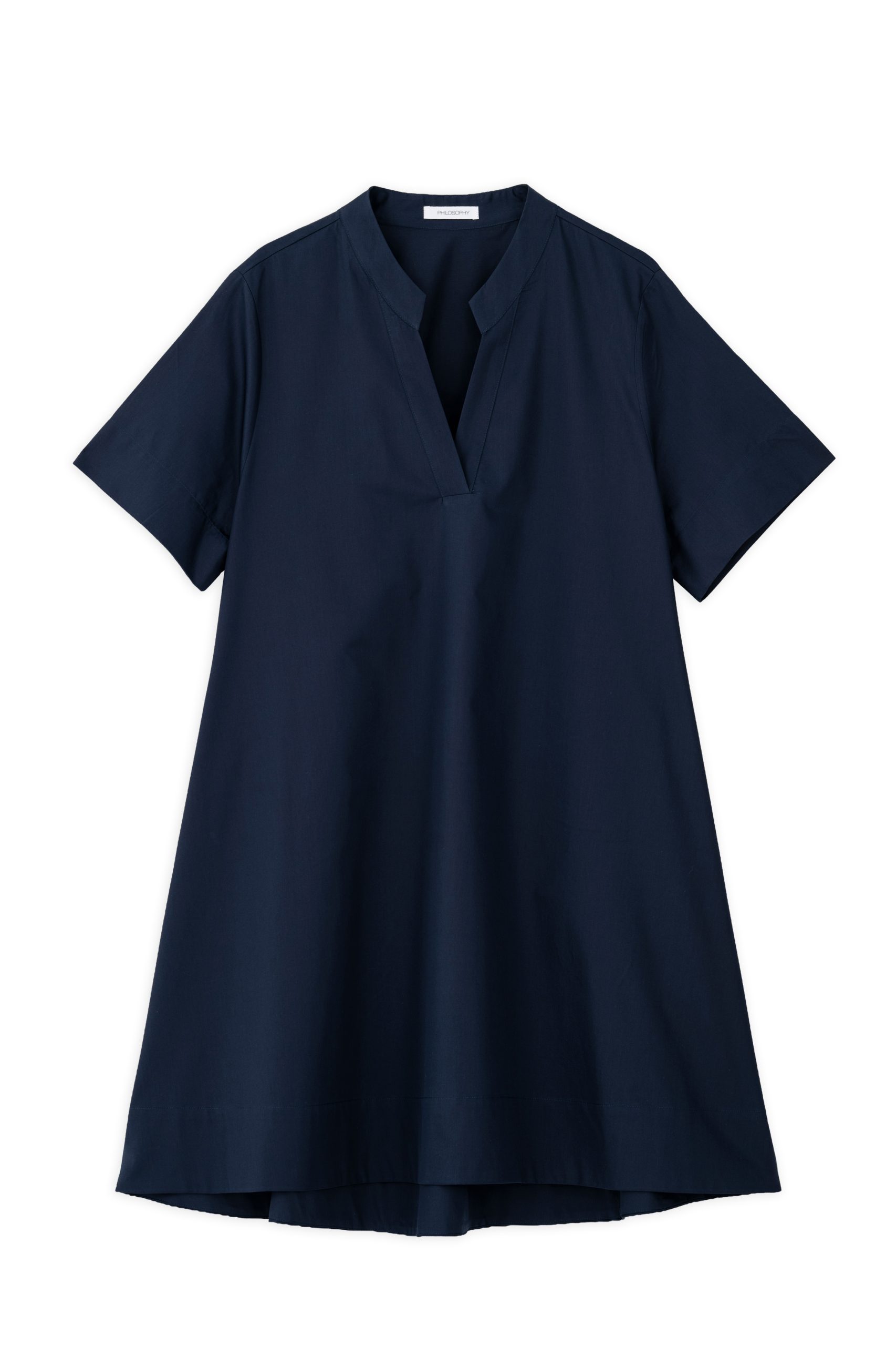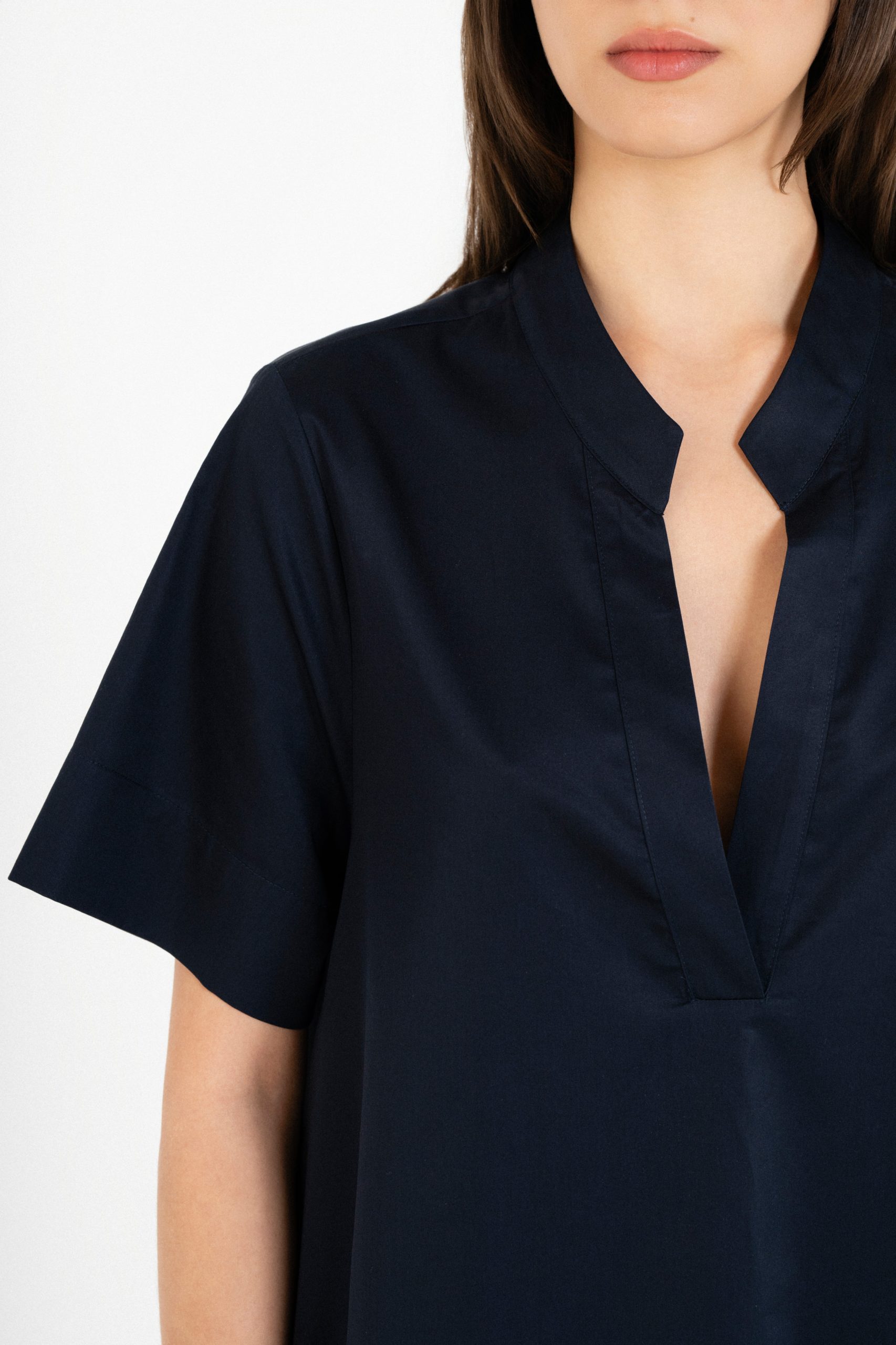 Κοντομάνικο φόρεμα ποπλίνα σε χαλαρή γραμμή και διακριτικό V άνοιγμα στο λαιμό.