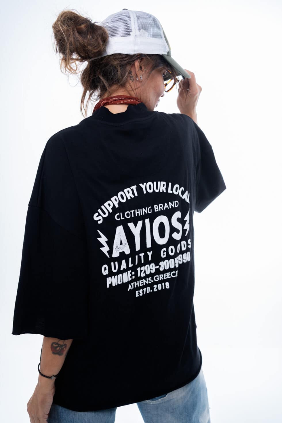 Oversized t-shirt από βαμβακερό ύφασμα υψηλής ποιότητας, με minimal αισθητική και urban χαρακτήρα. Στο μπροστινό μέρος διαθέτει διακριτικό Ayios, ενώ στο πίσω μέρος ξεχωρίζει για το πριντ που αποπνέει street culture διάθεση.