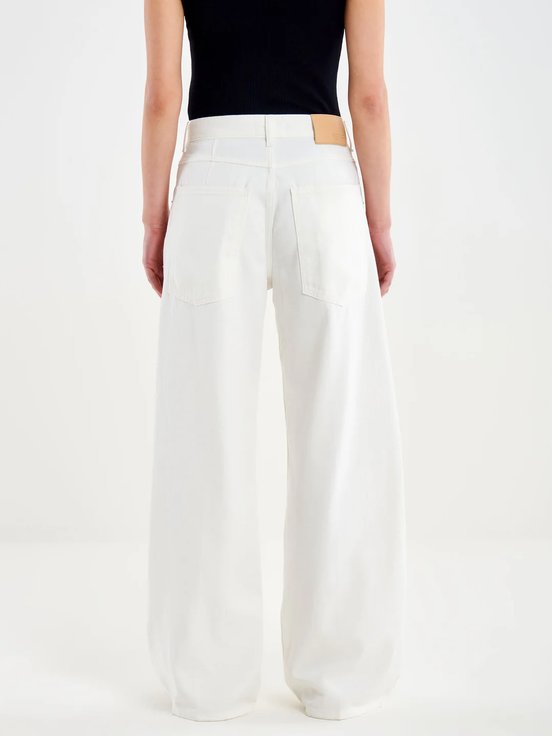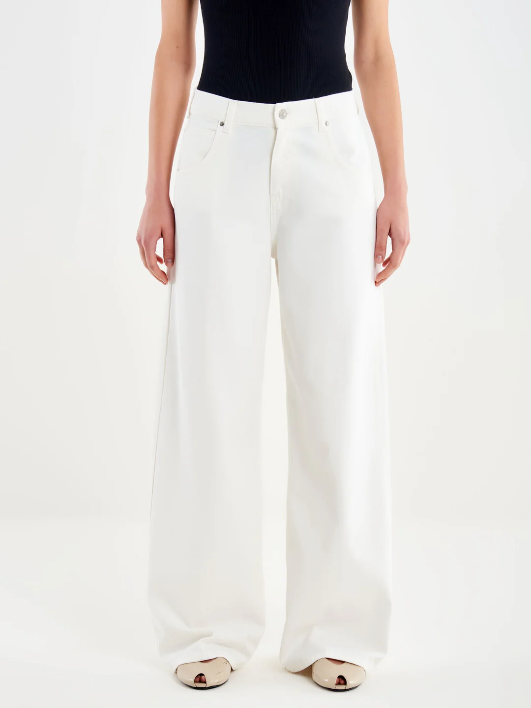 Τζιν Icon Mia με φαρδιά μπατζάκια και πέντε τσέπες. Κλείσιμο μπροστά με φερμουάρ και μεταλλικά κουμπιά. Ψηλόμεσο, φαρδύ μπατζάκι. Λευκό τζιν. Baggy εφαρμογή. Icon Fit: Mia